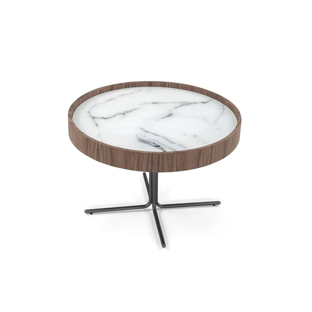 Coffee Table With 27-Inch White Marble Glass Top And Walnut Veneer - Regia Line