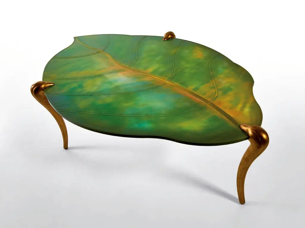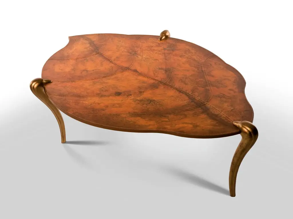 Coffee Table With Cast Alluminium Legs Gold Finish Hard Leather Top