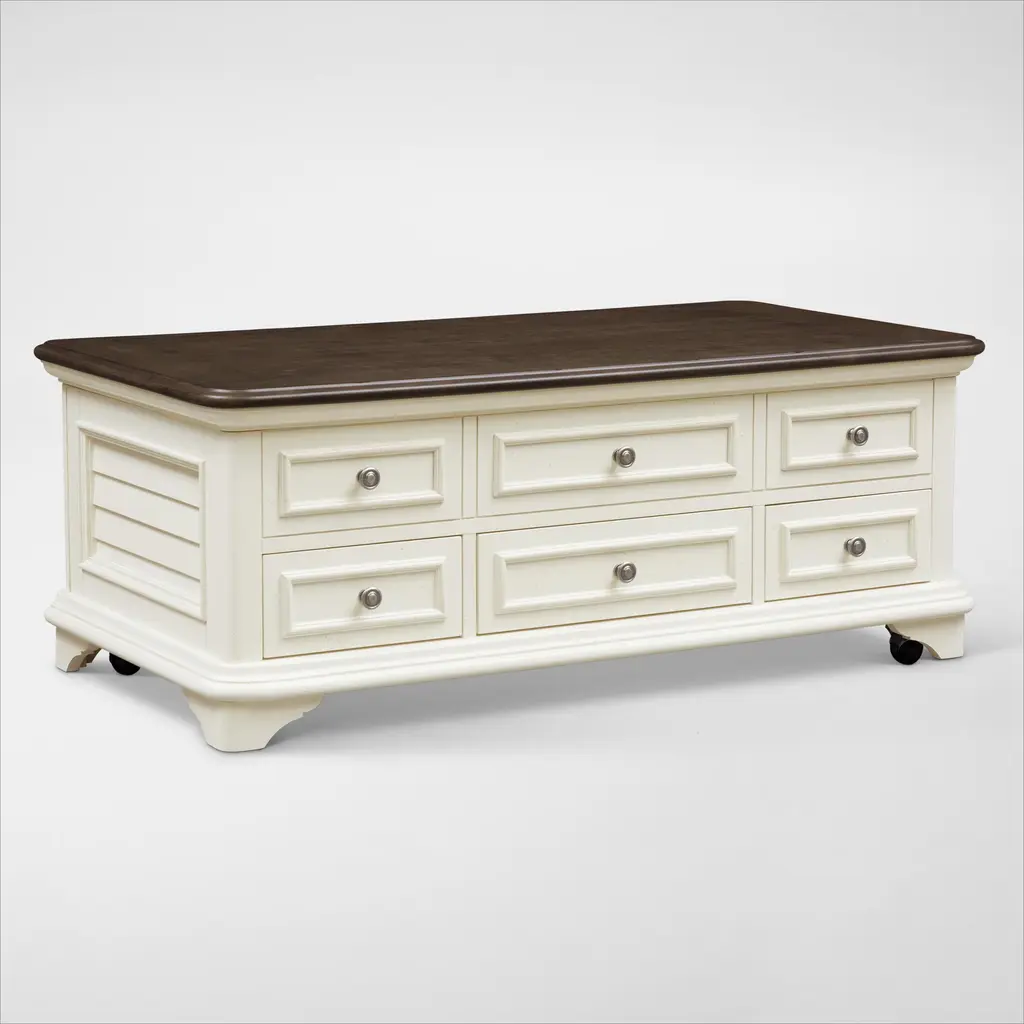 Store, serve and showcase your favorite things with this lift top coffee table. Its textured antique white finish creates a vintage two-tone look that will endure for years.