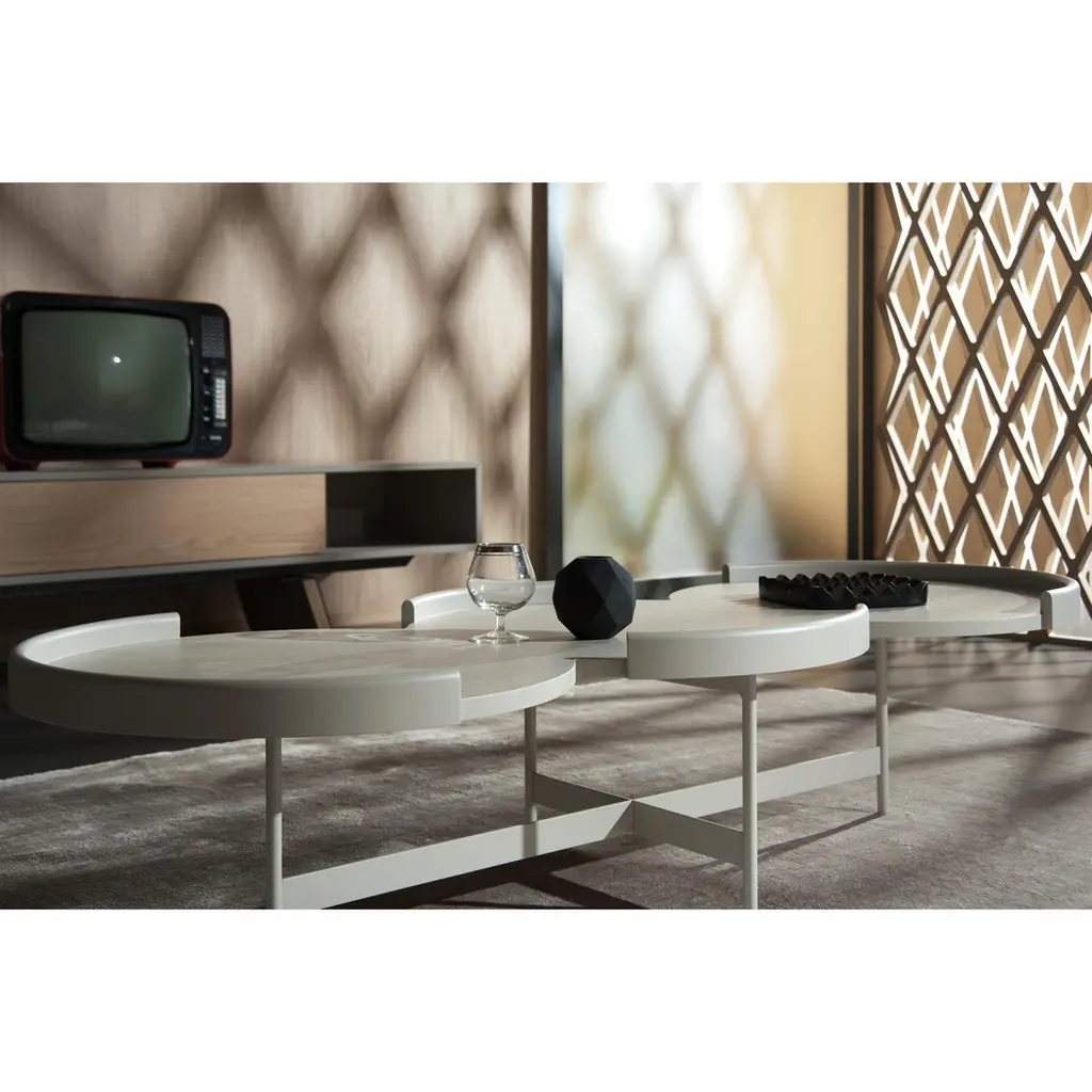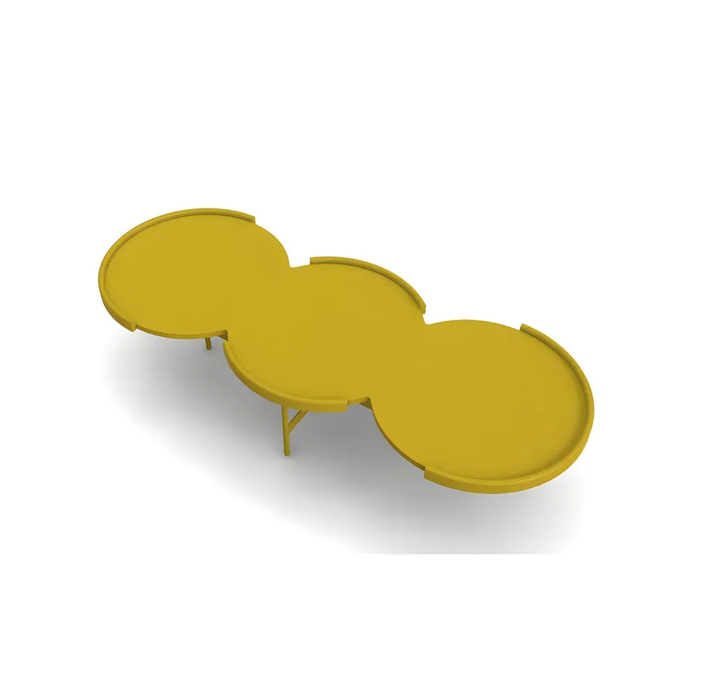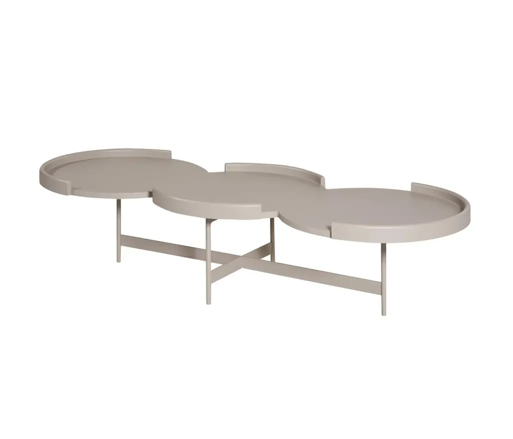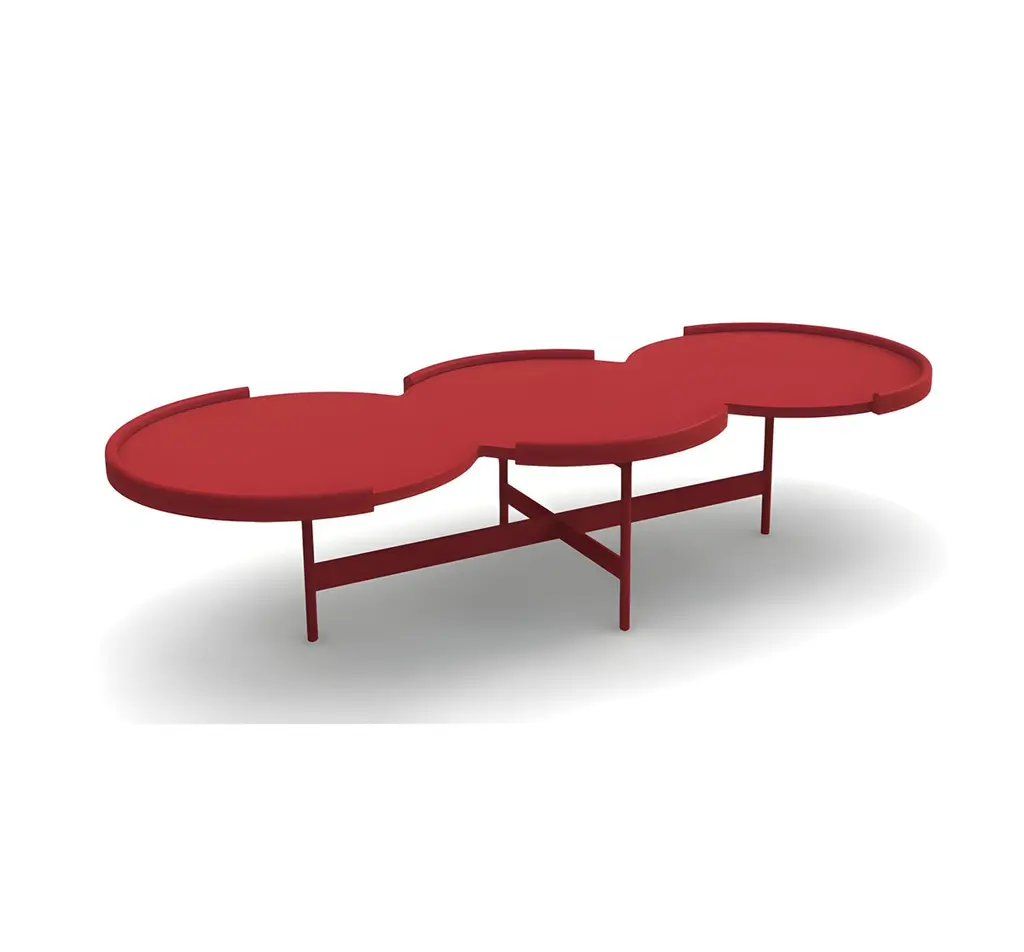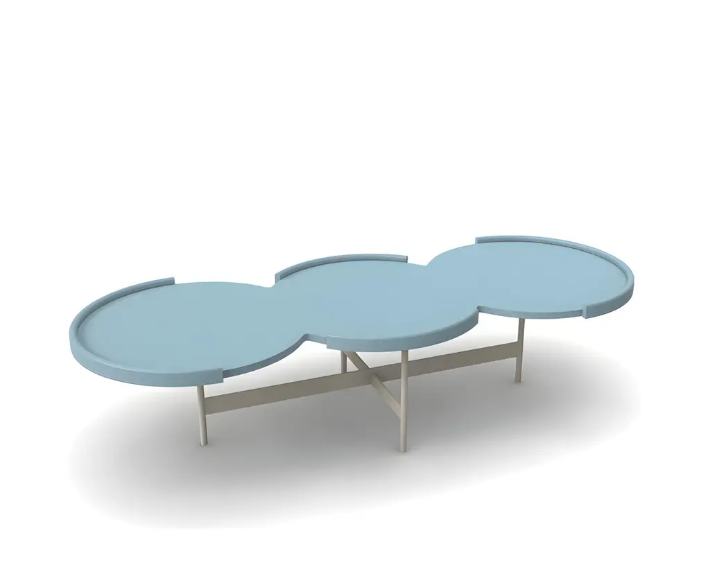 Coffee Table With Three Connected Round Tops In Sea Blue Lacquer