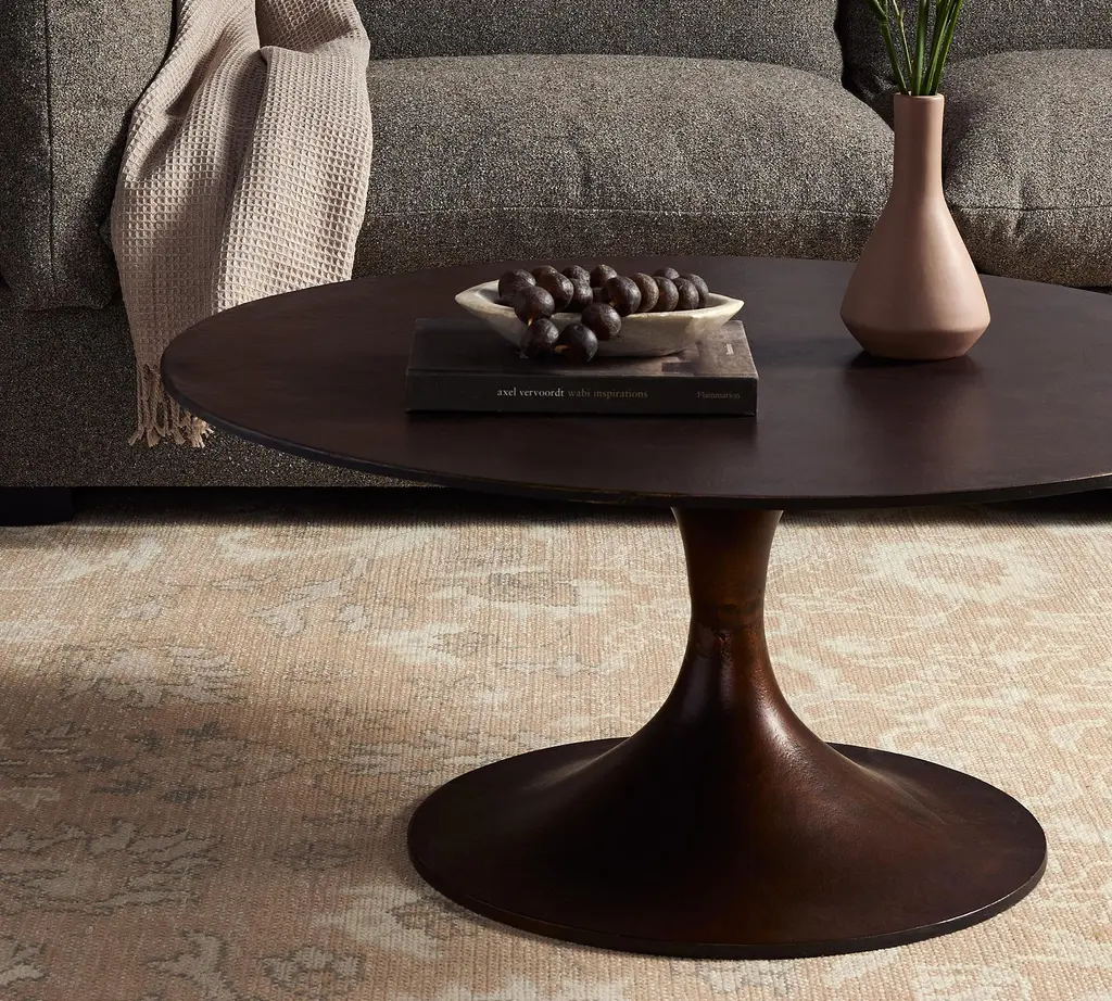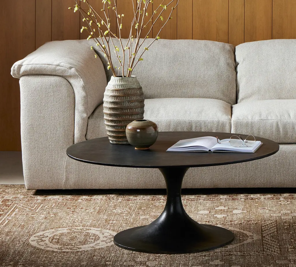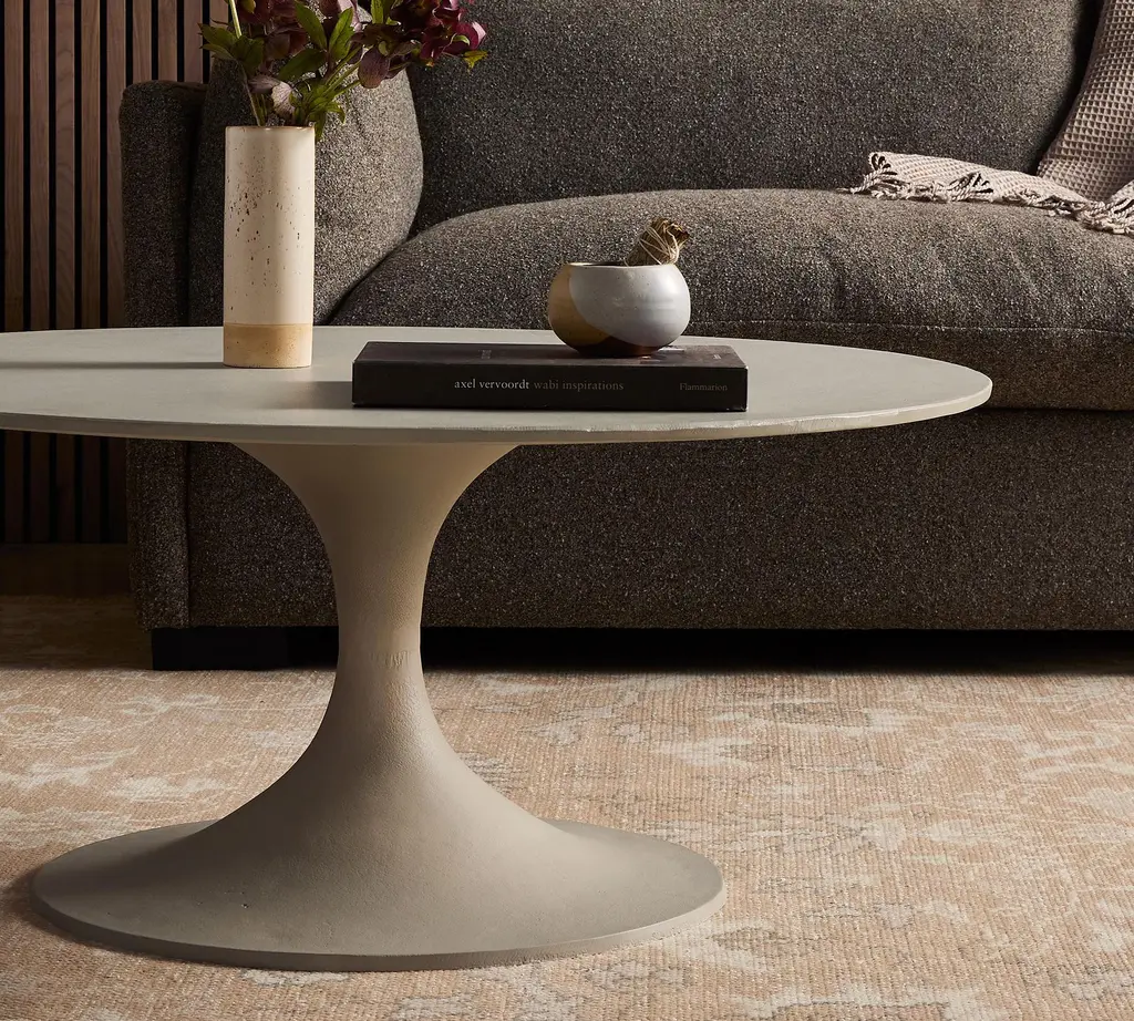 Our take on an iconic mid-century modern design, Collier is striking in its simplicity. Recalling a blooming tulip, the fluid, cast-aluminum form rests on a sculptural base that rises to a sleek, circular top. Its graceful, organic curves bring timeless beauty to an interior, beautifully complementing a contemporary urban apartment or open-layout living area.