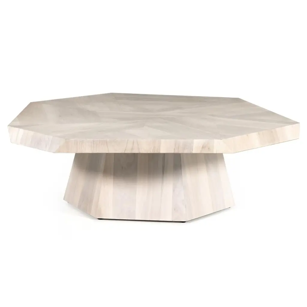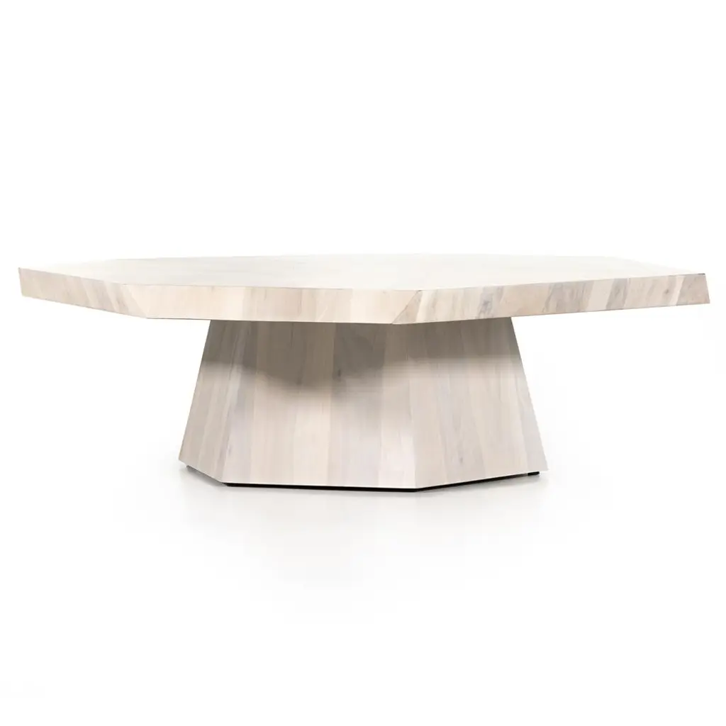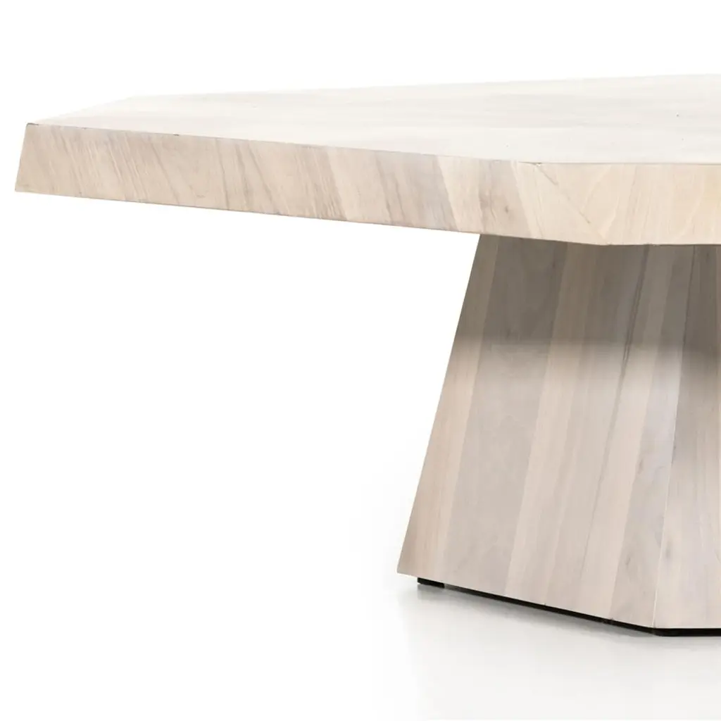 Colt Rustic Lodge Beige Walnut Wood Geometric Pedestal Coffee Table