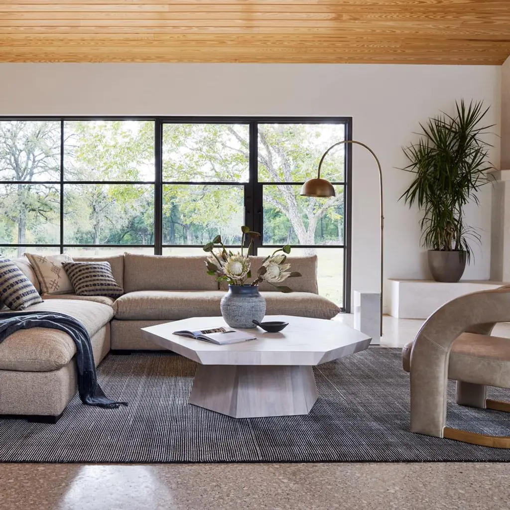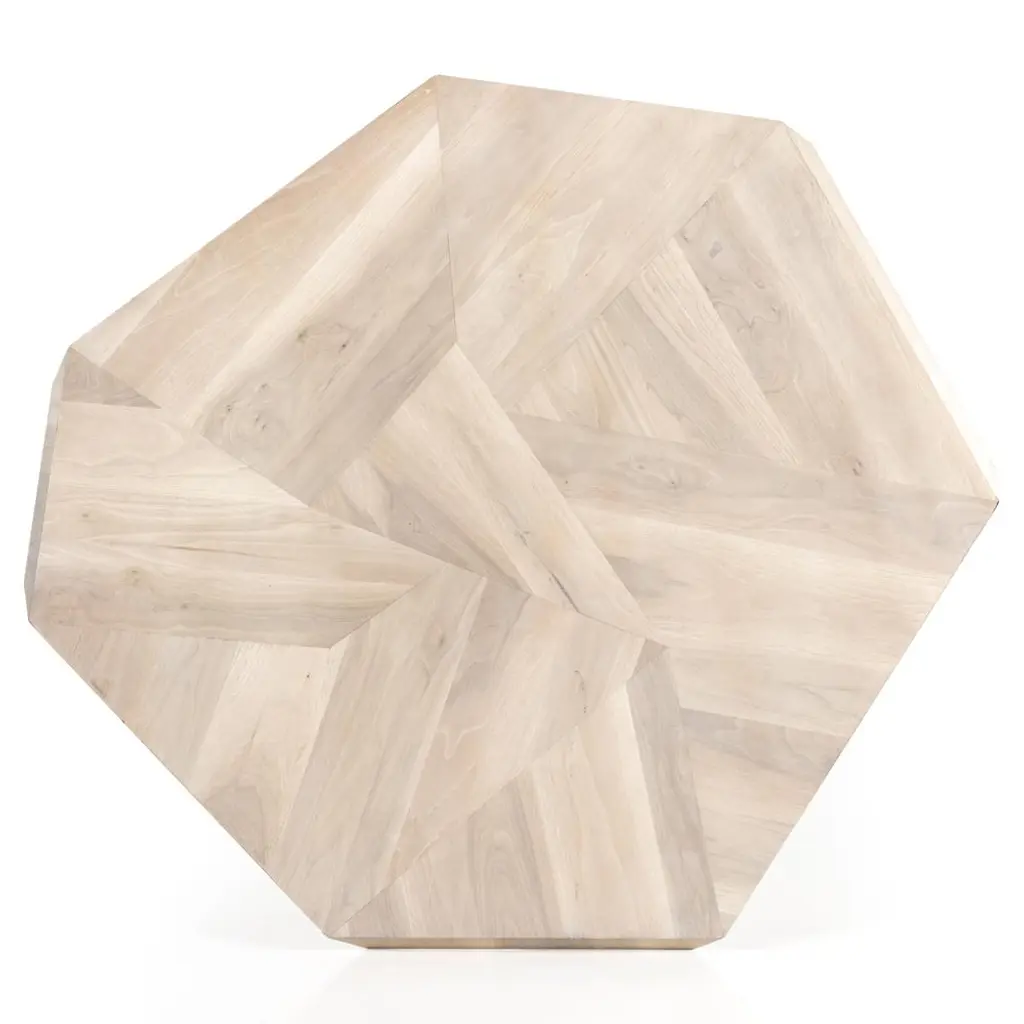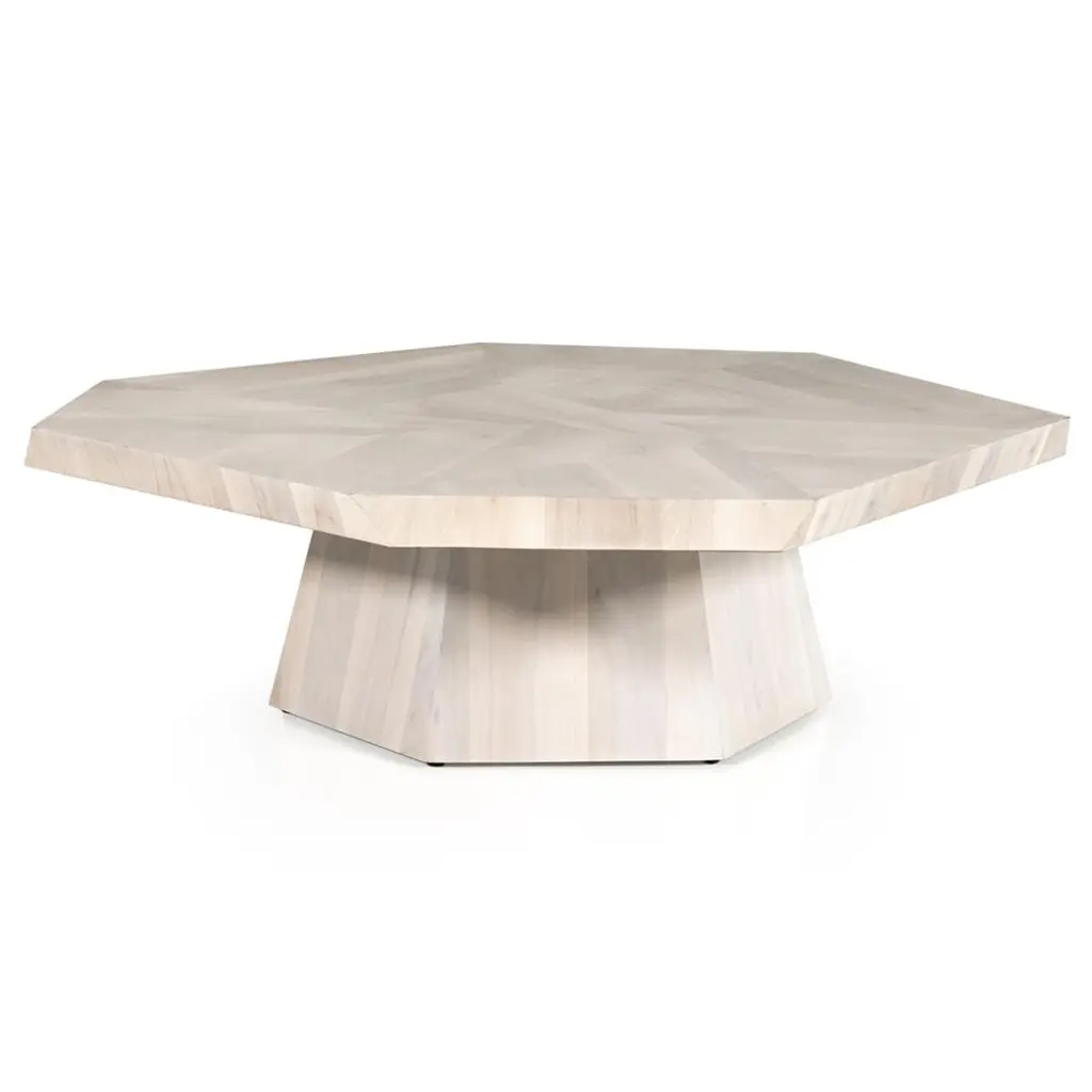 Colt Rustic Lodge Beige Walnut Wood Geometric Pedestal Coffee Table