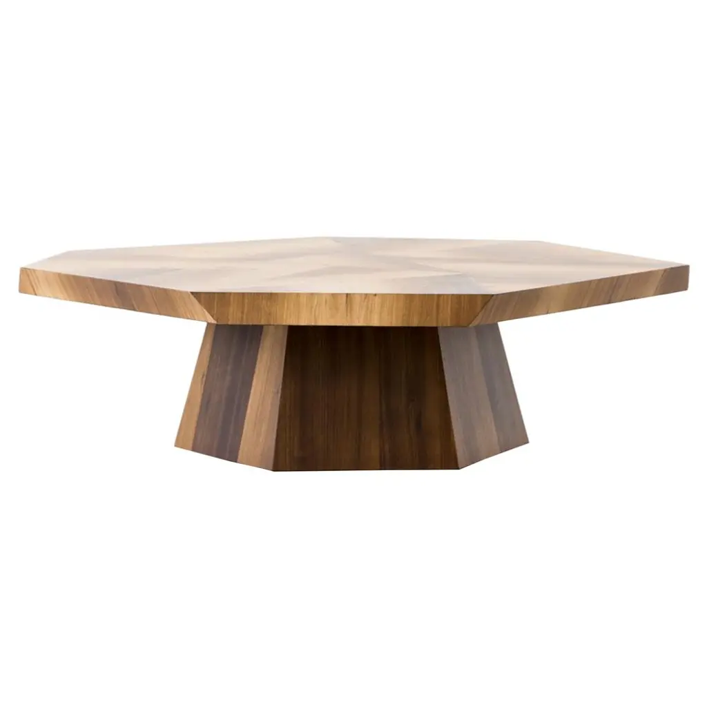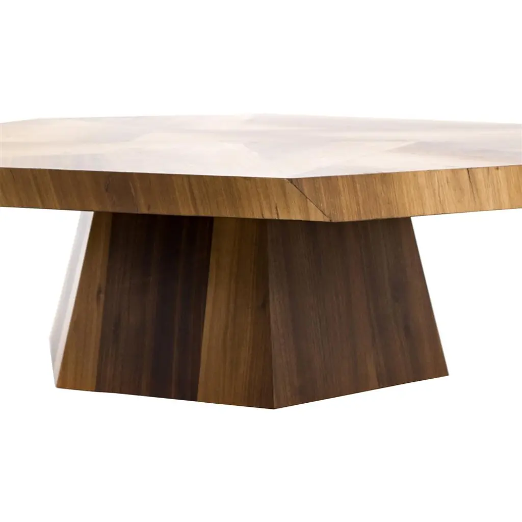 Colt Rustic Lodge Blonde Brown Yukas Wood Geometric Pedestal Coffee Table