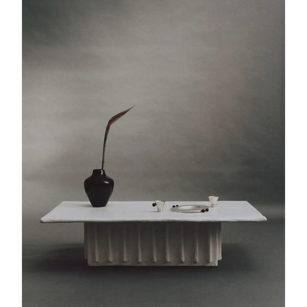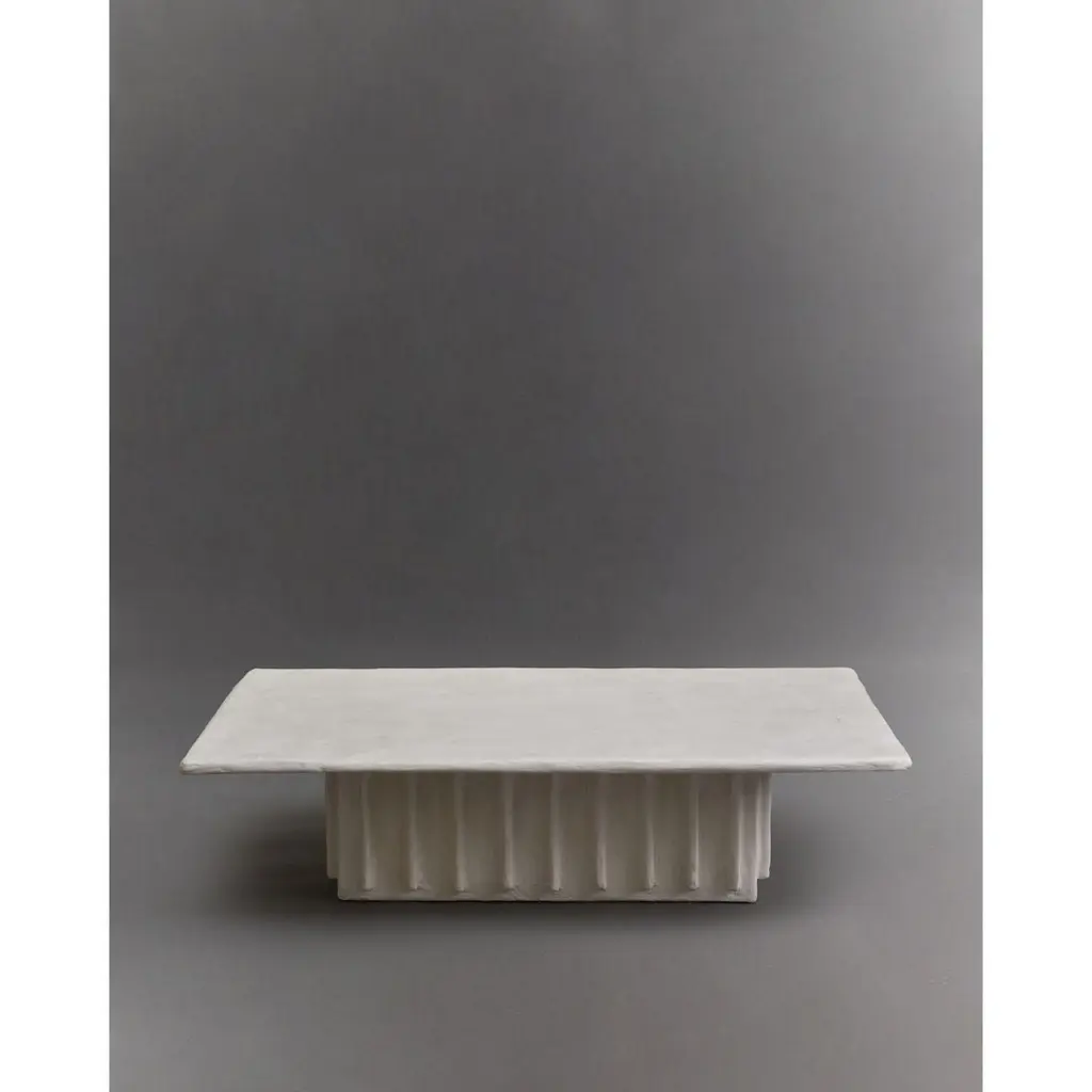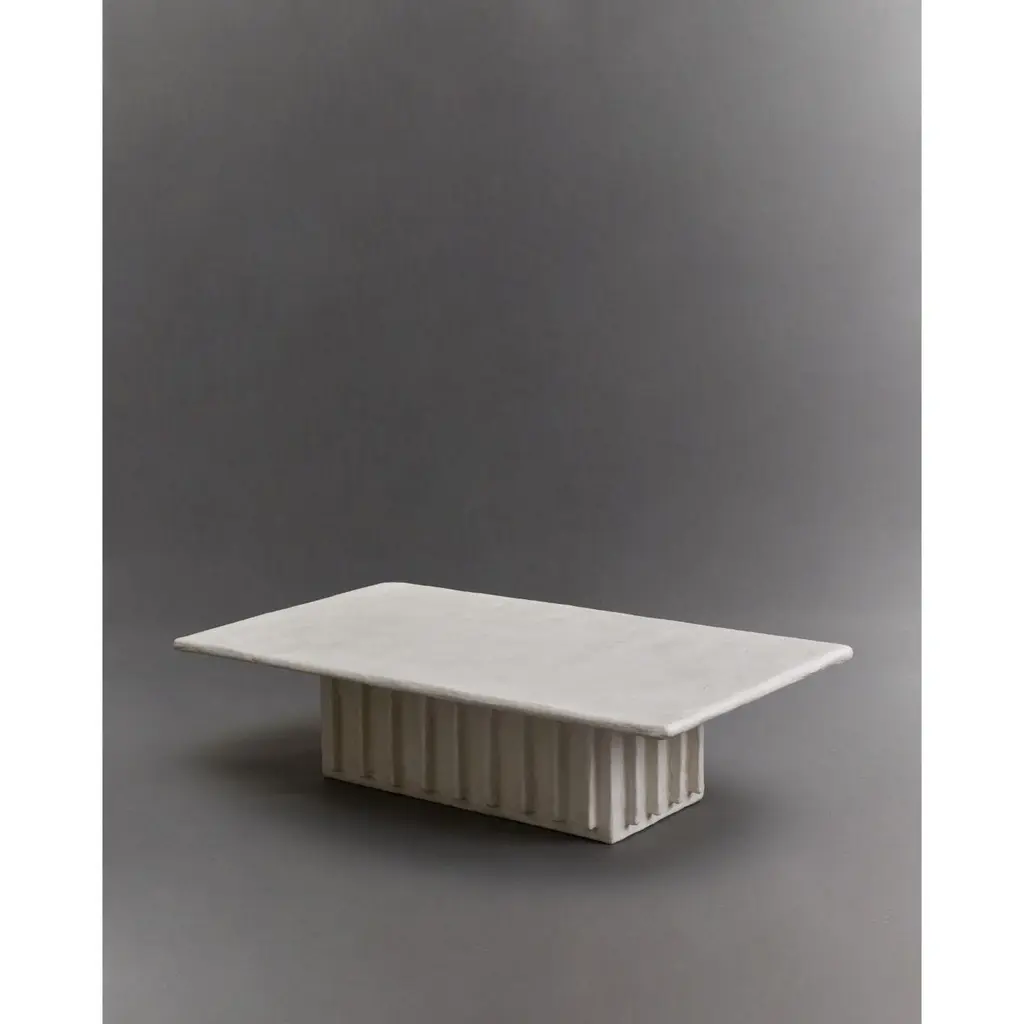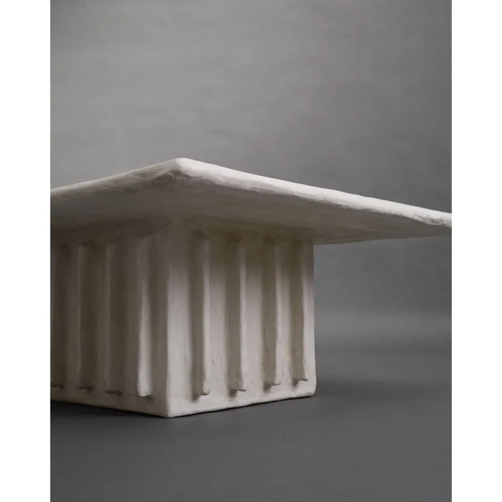 Columnar coffee table by OmbiaDimensions: W 122 x D 71.5 x H 30.5 cmMaterials: White raw plaster finish. Custom colors upon request.Ombia is a ceramic sculpture and design studio based in Los Angeles. The name and its roots originates from Colombia, where designer and founder Cristina Moreno comes from. She hand sculpts every piece, inspired by the dedicated artisans and craftsmanship of her country. Each piece holds a unique expression that inspires the everyday.Cristina's approach to furniture design is centered around celebrating the organic and imperfect, creating pieces that embody the beauty of handcrafted design. Each piece is carefully made by hand, imbuing it with a unique character and warmth. Ombia embodies texture, unconventional forms, proportions and attention to detail. Inspired to give a moment of pause, these creations will elevate and provide sanctuary to the home.