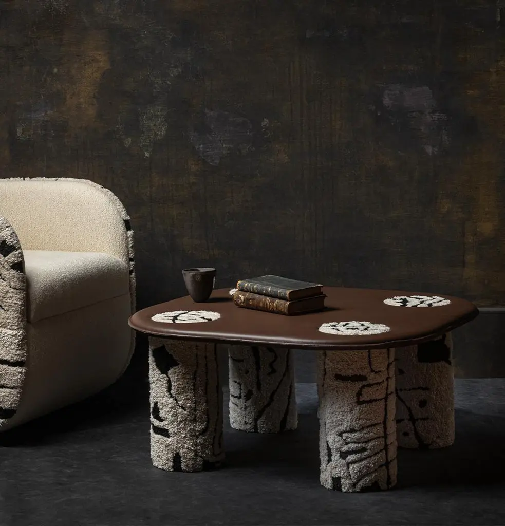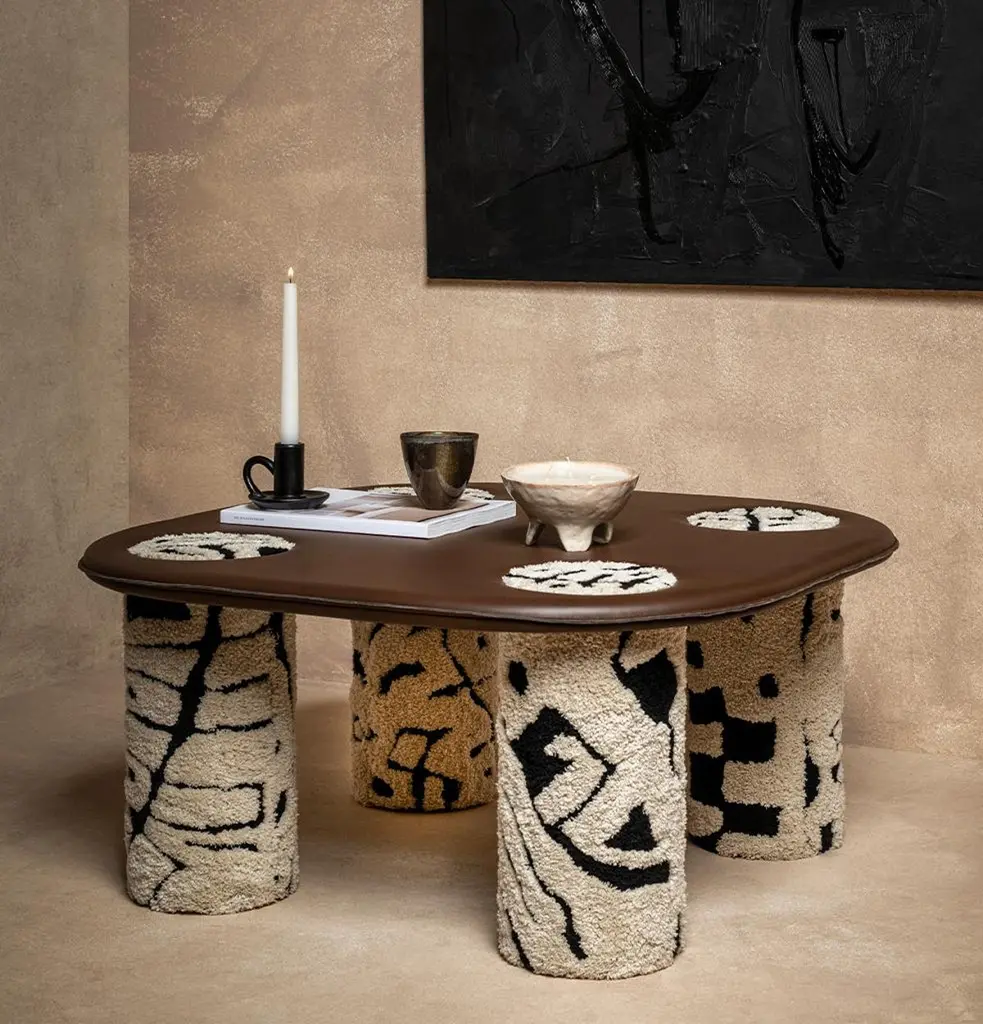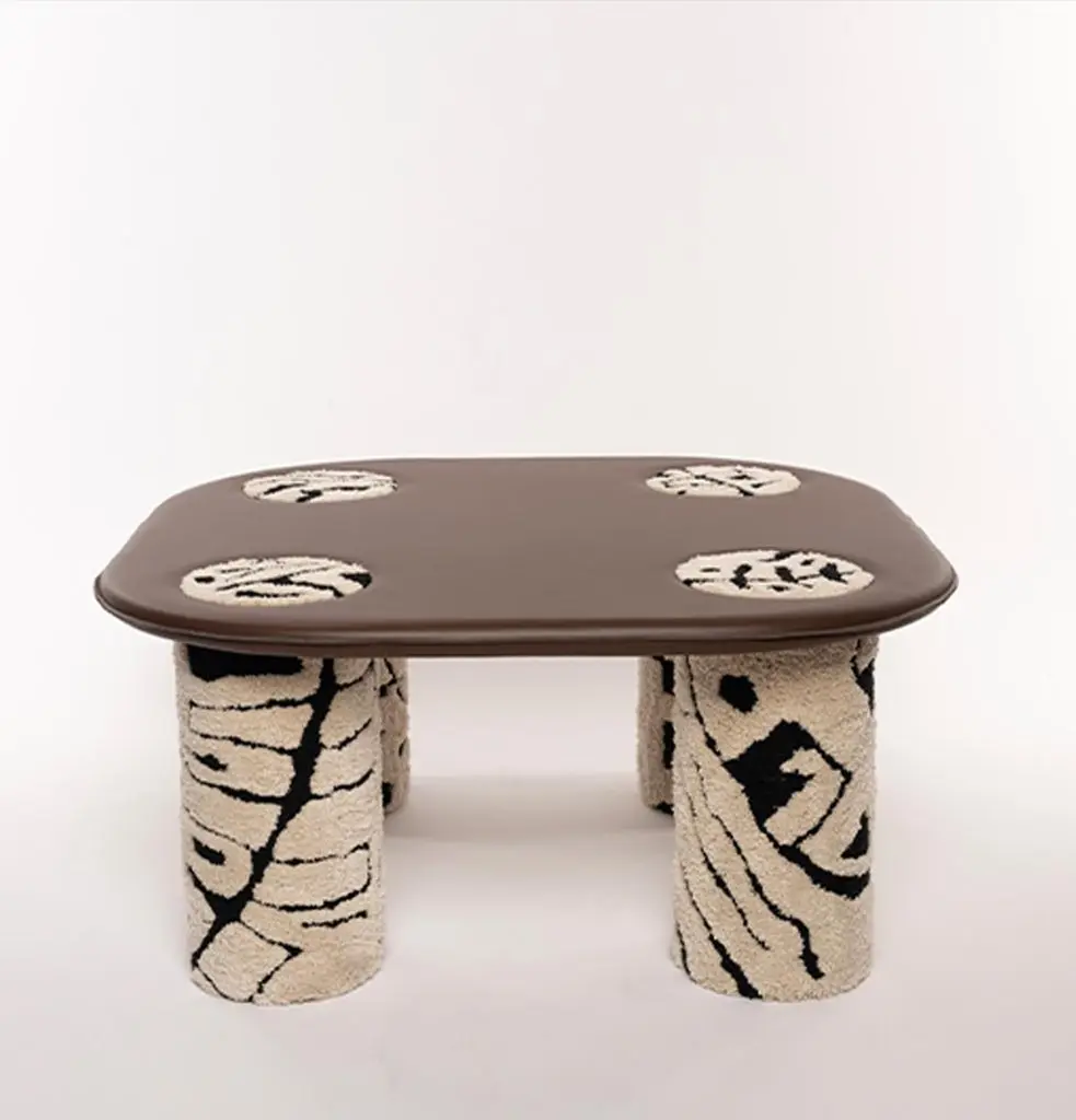 This unique coffee table , combining natural materials with a minimalist interpretation , was designed with inspiration from the comb symbol in Anatolian rug motifs .While it carries Anatolian textures both in its form and in its reinterpreted patterns, it is aimed to be positioned as a functional and eye-catching product in many areas.Tufting coated legs on solid wood frame.Leather table on MDF85 (width) x 85 (length) x 38 (height) (Product Dimension) (cm)Wiping Cleaning with a Damp Clean Cloth is RecommendedWith the questioning of modern life, designs made with seemingly identical standards as if mass-produced bring with them a danger of erosion that undermines the roots of cultures. Hermhaus believes that the lifeblood nourishing the spirit of modern life is hidden in the heritage within our roots.Khana emerged from the desire to preserve the deep heritage within modern life. Each pattern, every design, illuminates the present by carrying traces of the past, bridging the gap between history and the future. Hermhaus aims to enrich your living spaces with the Khana Collection, reminding of the depths in the roots of our culture.