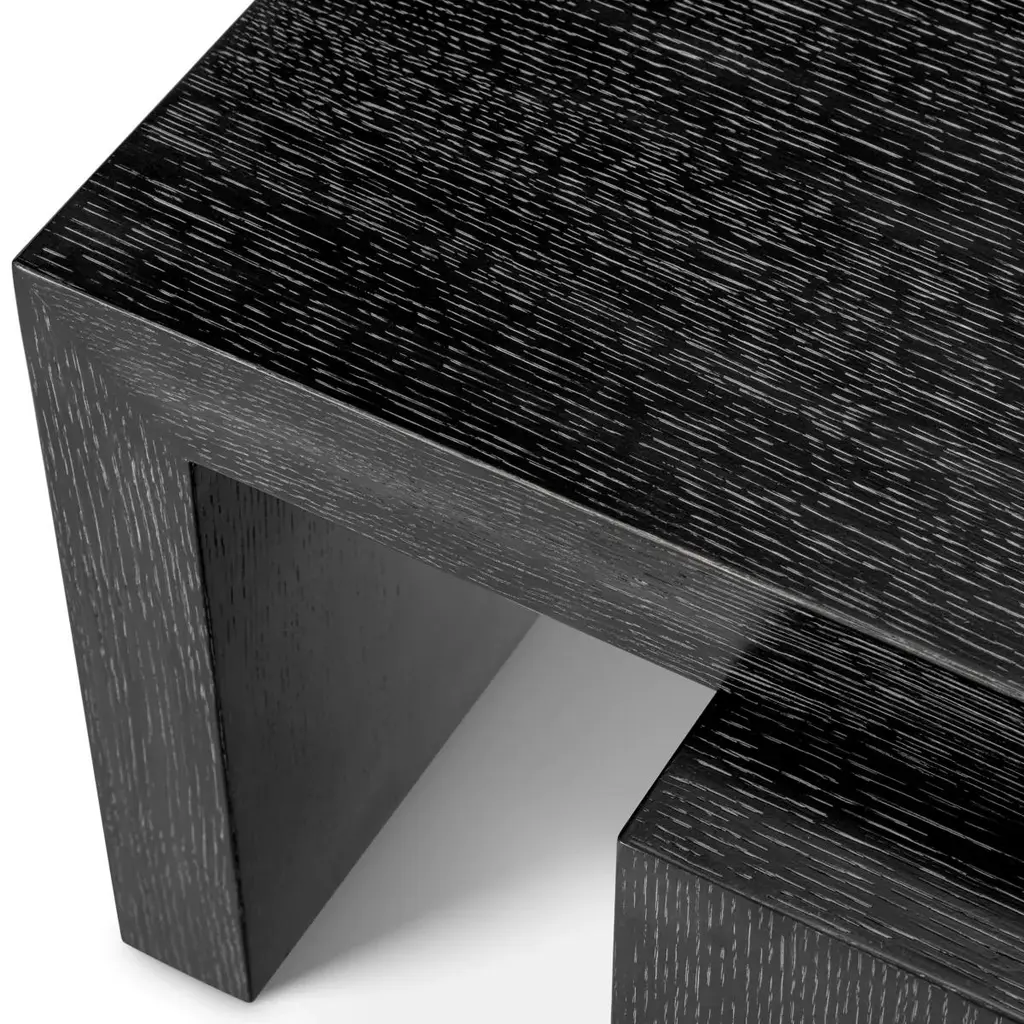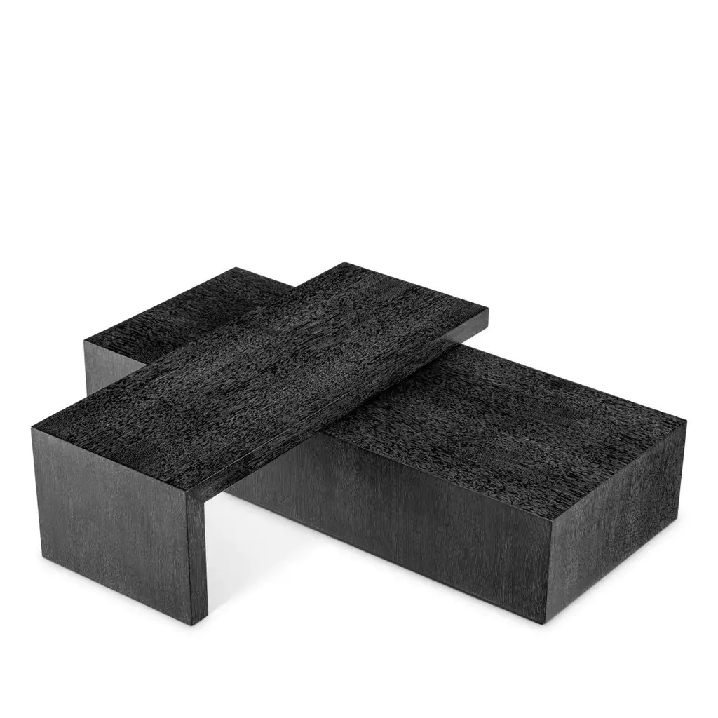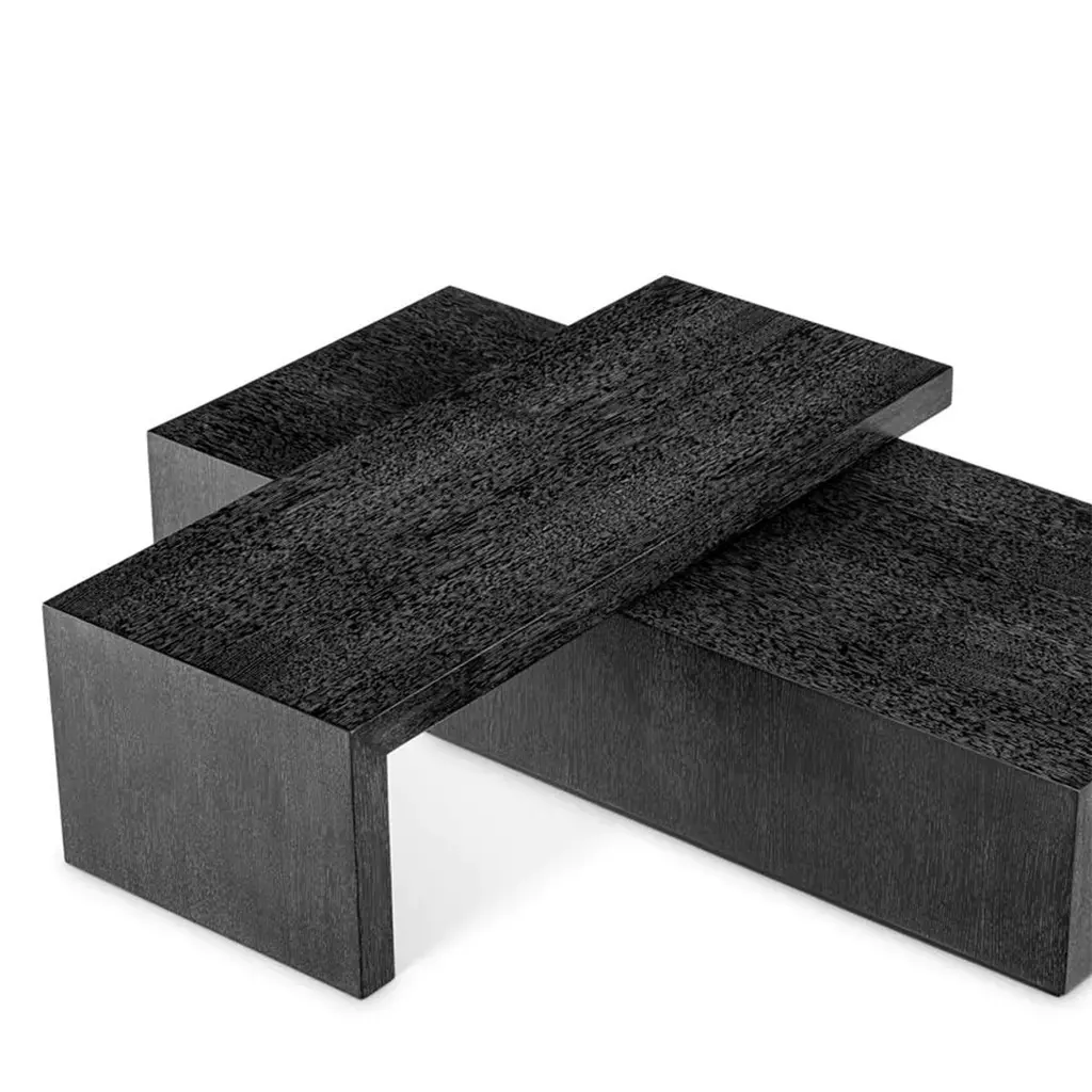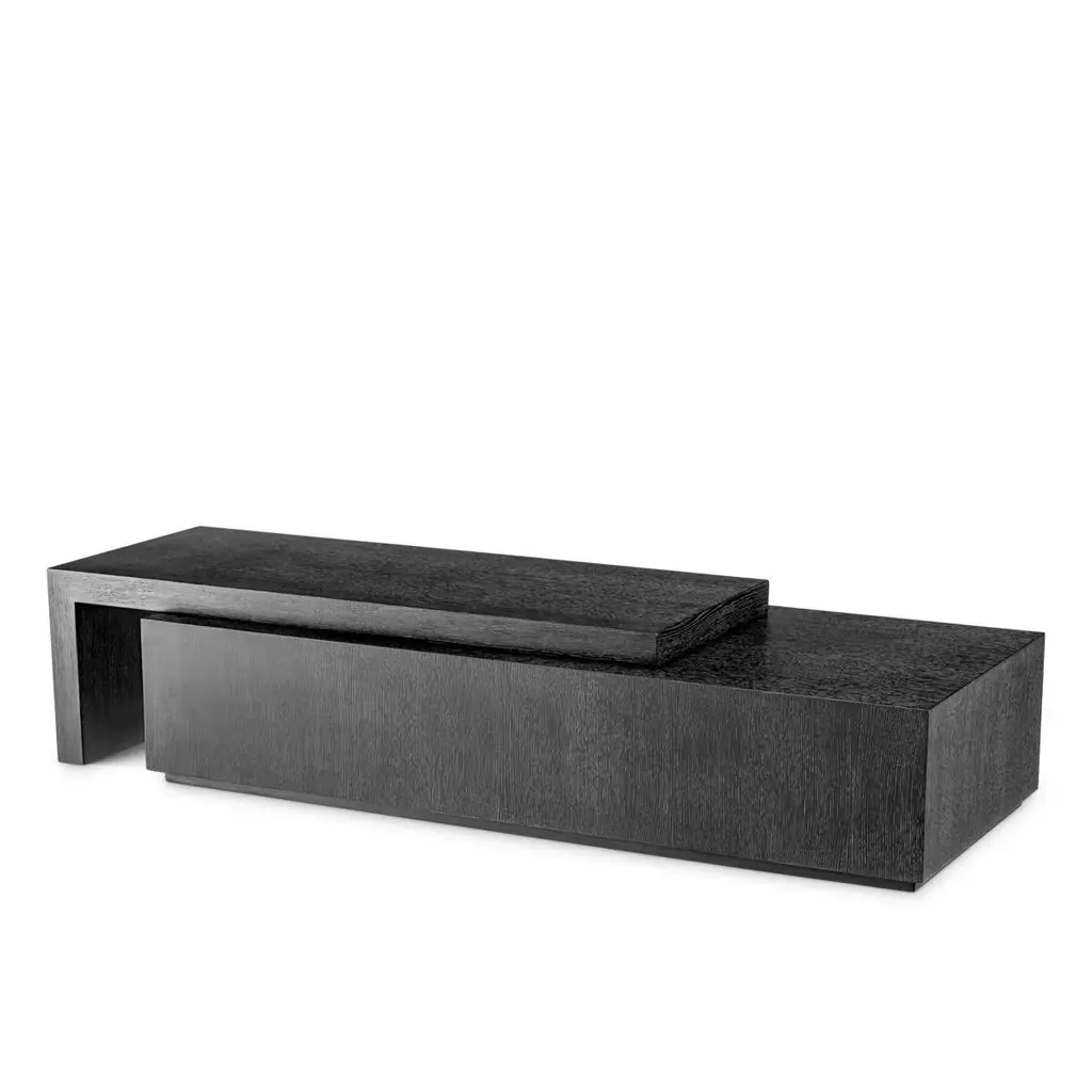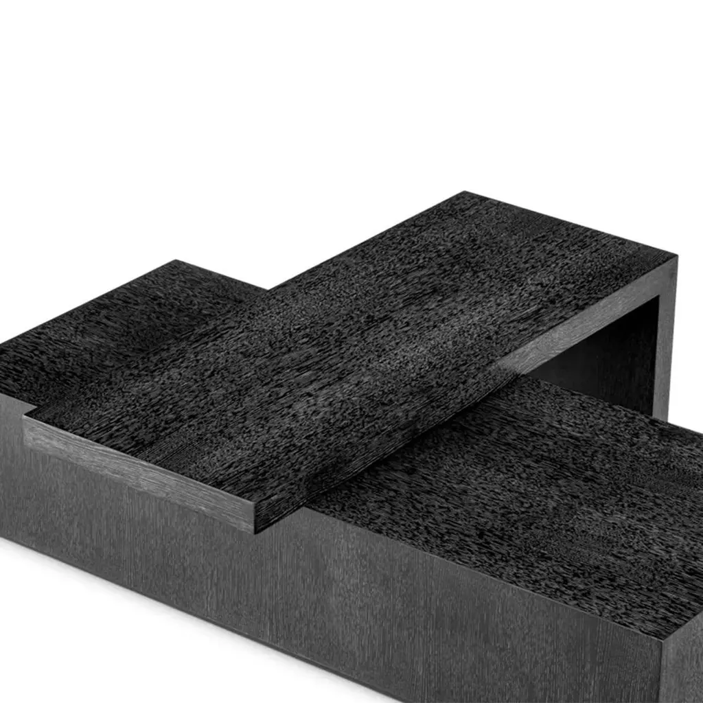 Coffee Table Compo with all structures made ofwood, solid mahogany wood, oak veneer in stained darkgrey oak finish, with 2 rotative coffee tables.