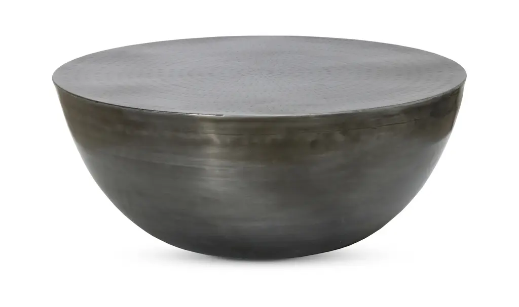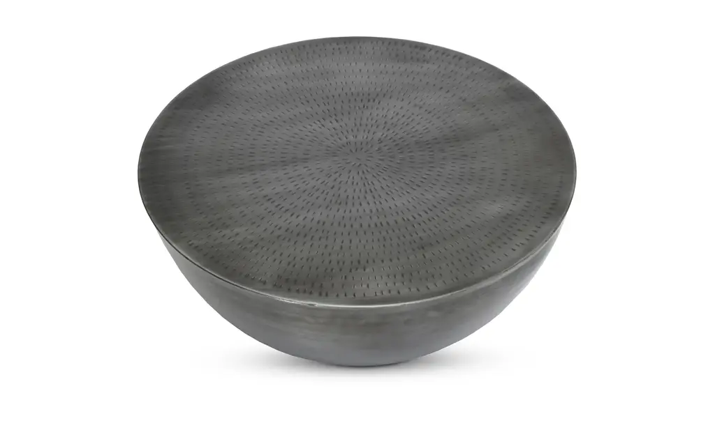 Coffee table/artwork hybrid? Maintaining a sleek, shapely design, the Conga coffee table comes crafted from iron that's been hallowed into its statement form. Emphasizing a cool, brushed zinc finish and indented tabletop design, this coffee table should only expect compliments. Looking for a different sheen? Conga is also available in a copper powder-coated finish.
