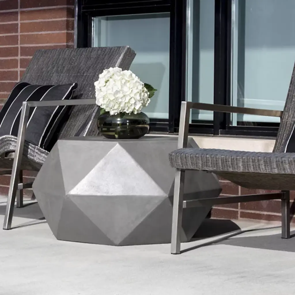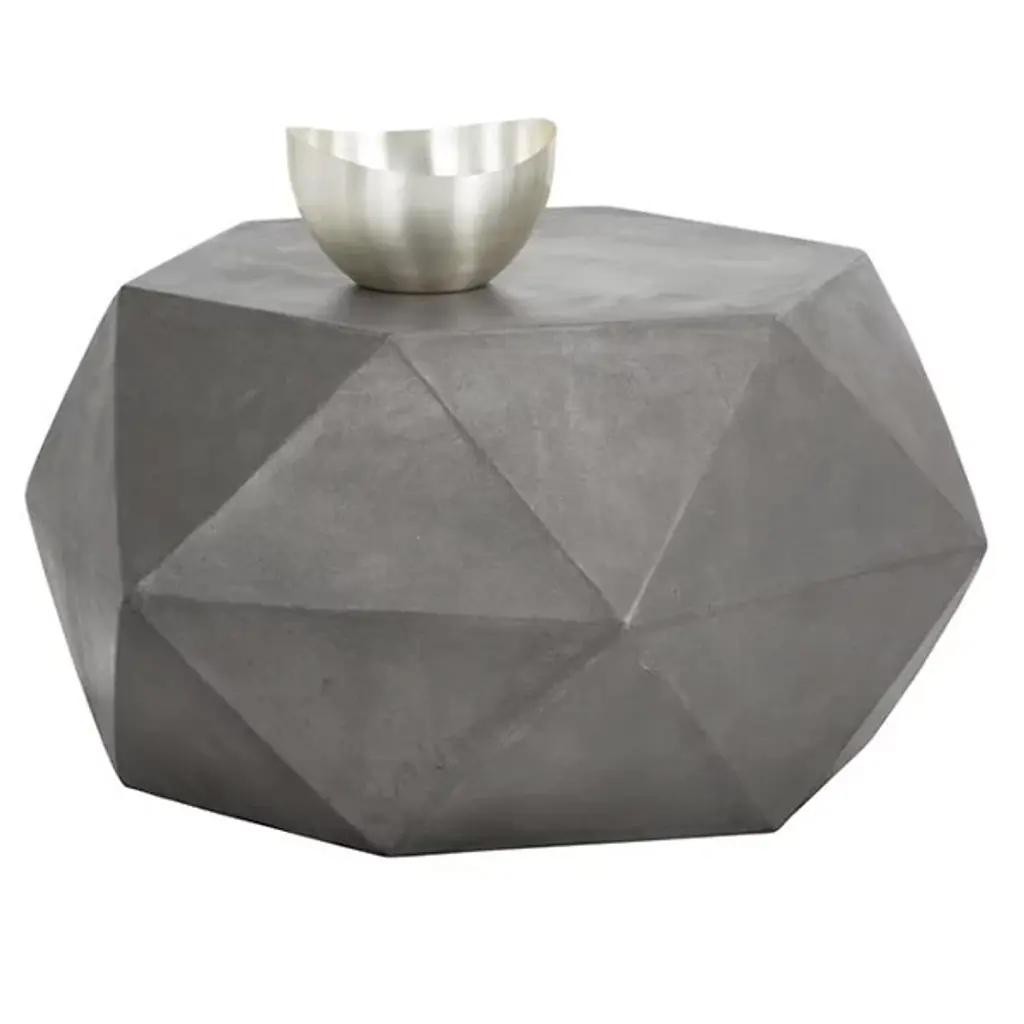 The Constance Outdoor Coffee Table from Sunpan breaks free from conventional shapes. Angular planes meet at unexpected points, creating a piece that commands interest. Glass-fiber reinforced concrete provides enduring stability while resisting weather damage. The sealed surface maintains its appeal through changing seasons. This table finds its place in both urban terraces and modern interiors. Random marks and tiny bubbles on the concrete surface speak to its handcrafted origins.