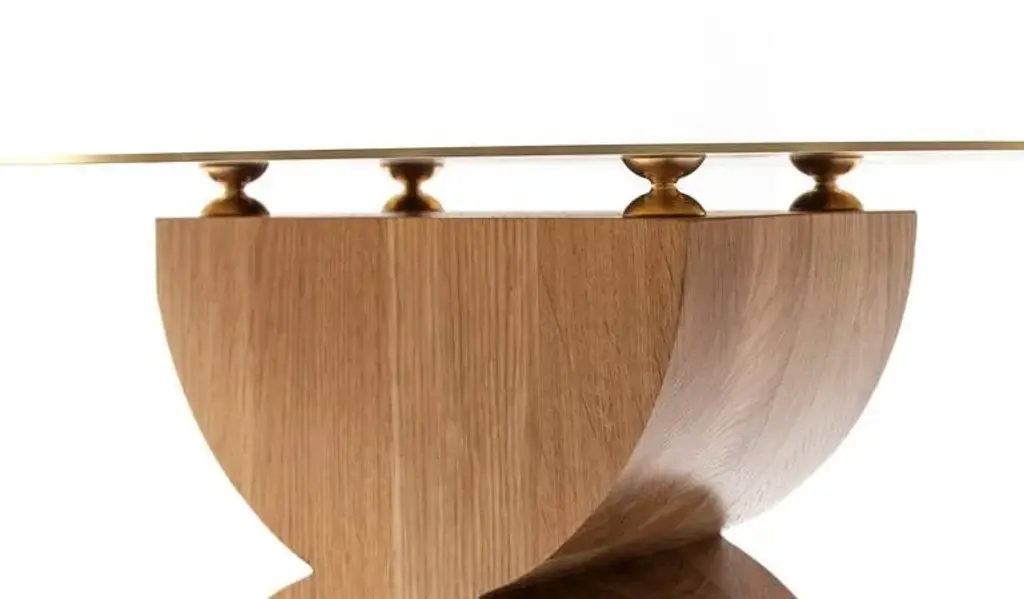 A work of art that is currently part of the Ultramobile collection, this piece was designed by Studio Simon as an homage to the work of Constantin Brancusi. Derived from the Romanian artist’s universe, the two elements are industrially manufactured, and work perfectly together, conferring an elegant feeling of movement and continuity. This side table features a waxed oak base, while the thin round top is made of brass.Ideal as a modern side table for a sofa or in a lounge, the piece has a solid wood base in oak, with waxed finish, while the circular top is made of brass sheet.TOP Circular brass sheet profile with satin brushed surface.BASE Solid oak with waxed finish.PINS Brass pins and nylon bushings.