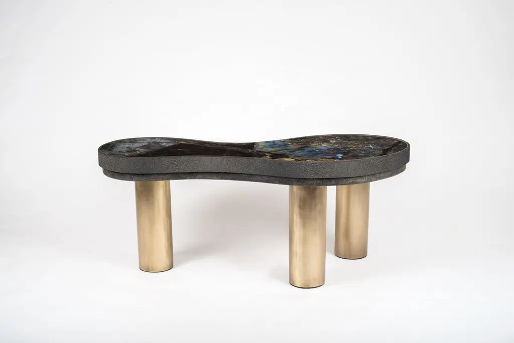 Constellation Coffee Table In Shagreen, Quartz And Brass By Kifu Paris