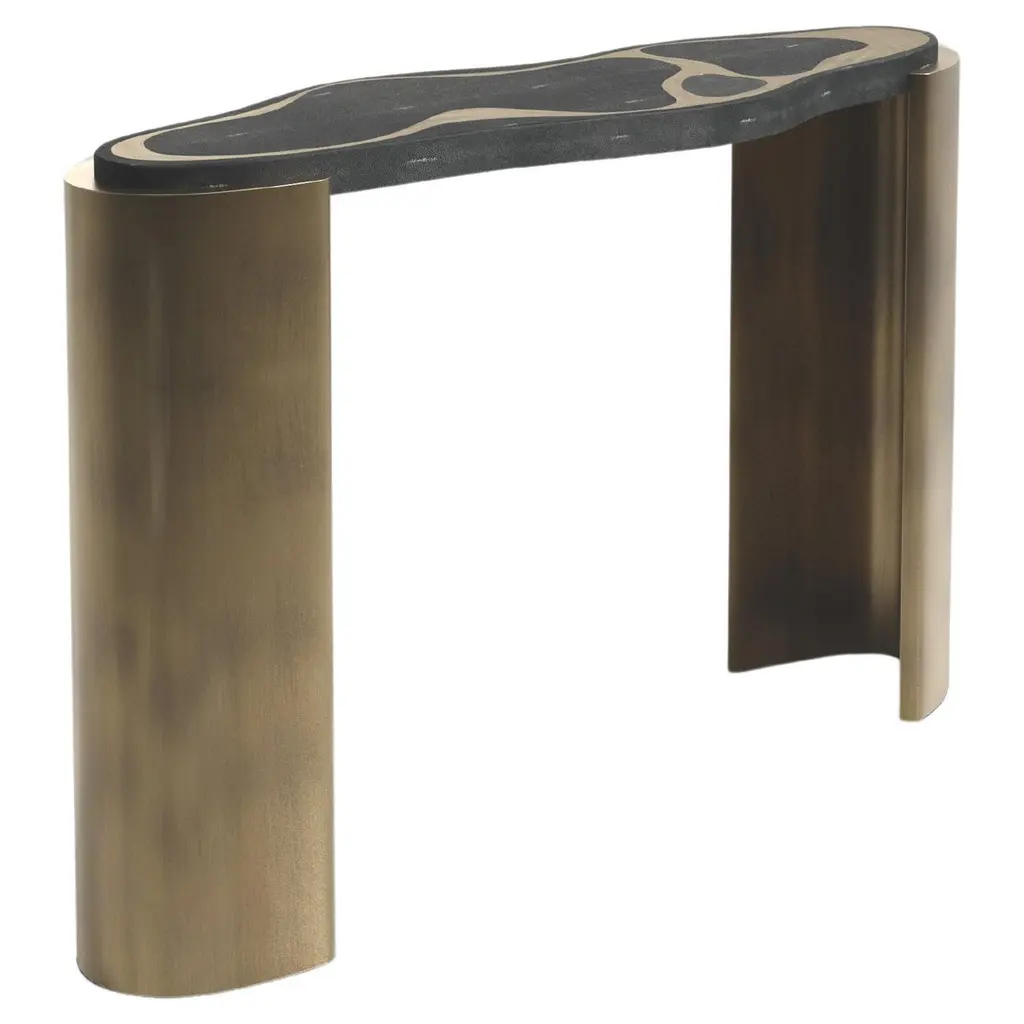 The Paris based label has distinguished themselves since their launch, with their iconic use of shagreen mixed with brass and other exotic materials. All furniture is handcrafted by skilled artisans, ultimately making each piece unique, designed in Paris and produced in the Philippines.The constellation coffee table is whimsical and elegant with its galactic inspired roots. This piece can also double as a bench. The shagreen is hand-dyed by artisans and the designer calls the final finish “Antique Black” shagreen. Each shell is hand-selected before it is inlaid creating a one of a kind piece each time. This piece is designed by Kifu Augousti, the daughter of Ria and Yiouri Augousti.The dimensions of these pieces are: 110 x 51 x 45 cm / 43.25 x 20 x 17.75”All Kifu Paris pieces are handmade by artisans, ultimately making each piece unique. Custom color or sizing available on request.Wipe clean with soft dry cloth.Although inspired by her parents, her collection of home accessories and furniture is a distinct identity of its own. Kifu uses handmade techniques of elaborate inlay patterns of shagreen, shells, semi-precious stones, materials she experienced as a child growing up in her parent’s studio, but interpreted in a younger quirkier way reflecting her youth. From her "jewelry inspired knobs" on decorative boxes, gold bar boxes and an extravagant inlay pattern mix of shagreen and shell inspired by galactic constellations, as seen on her enormous round mirror, is refreshing to see. Kifu embodies whimsical elements throughout her collection and is not afraid to be daring and unexpected in her approach to design.All shagreen-covered items should be kept out of direct sunlight, color variants may occur on the stingray and other exotic finishes, but this showcases the Parisian label's commitment to creating authentic luxurious products using natural components.