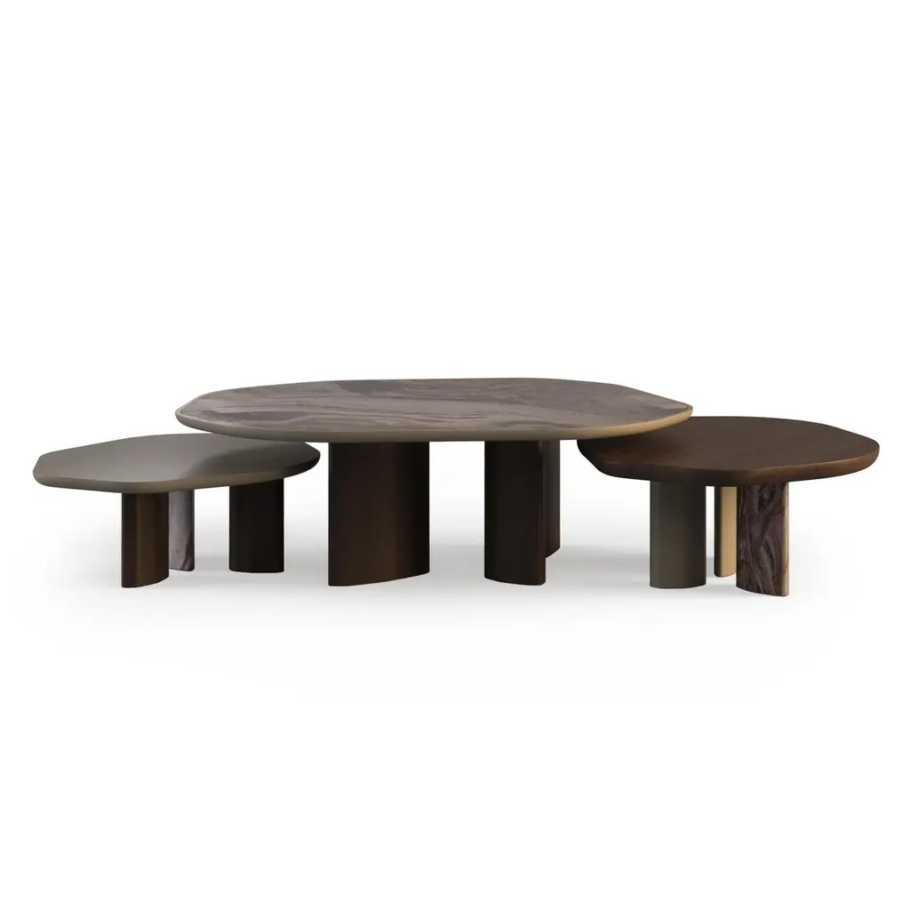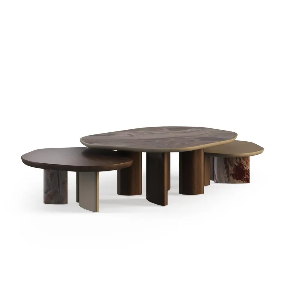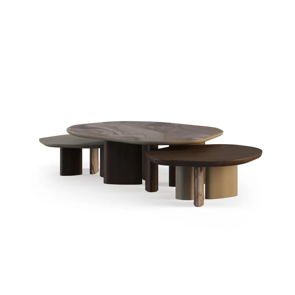 In Guarani culture, Aty means a space for sharing and connection. Inspired by this spirit, Aty emerges—a coffee table that celebrates the fusion of natural materials, organic forms, and the balance between tradition and modernity. Its veins and shapes tell the story of the earth, while the complementary tables interact with other elements, creating a sense of unity and harmony in any space.Standard VersionTable Small: Iroko • Table Medium: Iroko and Marble Top • Table Big: Iroko and Marble TopAll Myface materials are sourced from premium suppliers and engineered to deliver the best possible performance outdoors.Water, Mold, Mildew, UV, and fading resistance are some of the characteristics that you can expect from both materials, which are available in a wide array of colors and patterns.