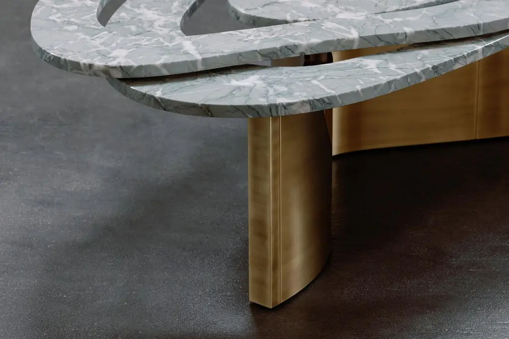Contemporary Benagil Coffee Table, Marble Top, Brass, Handmade By Greenapple
