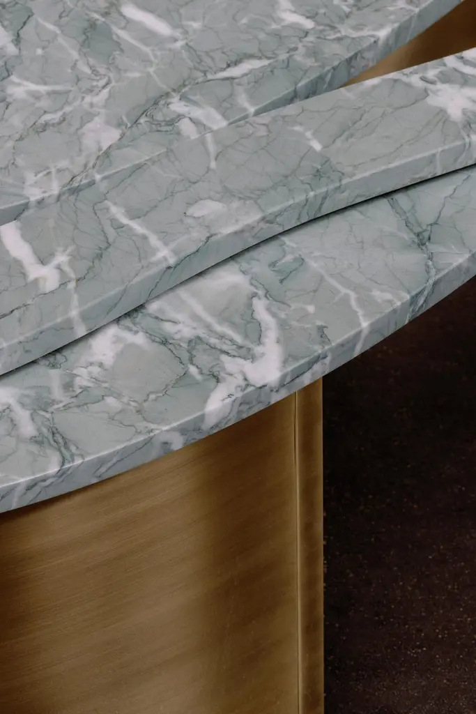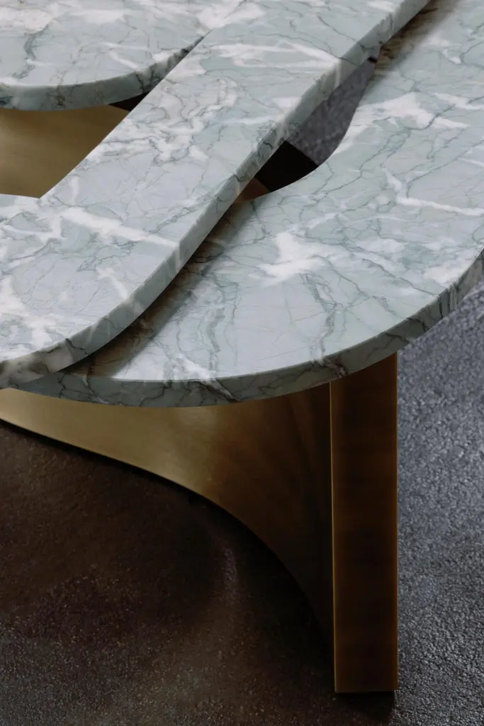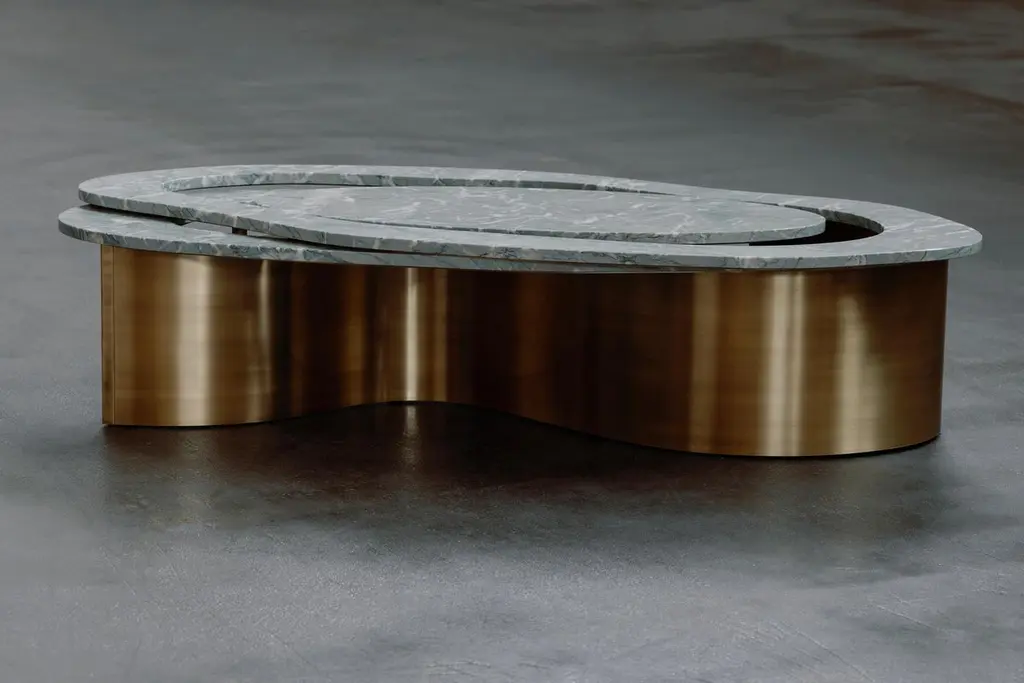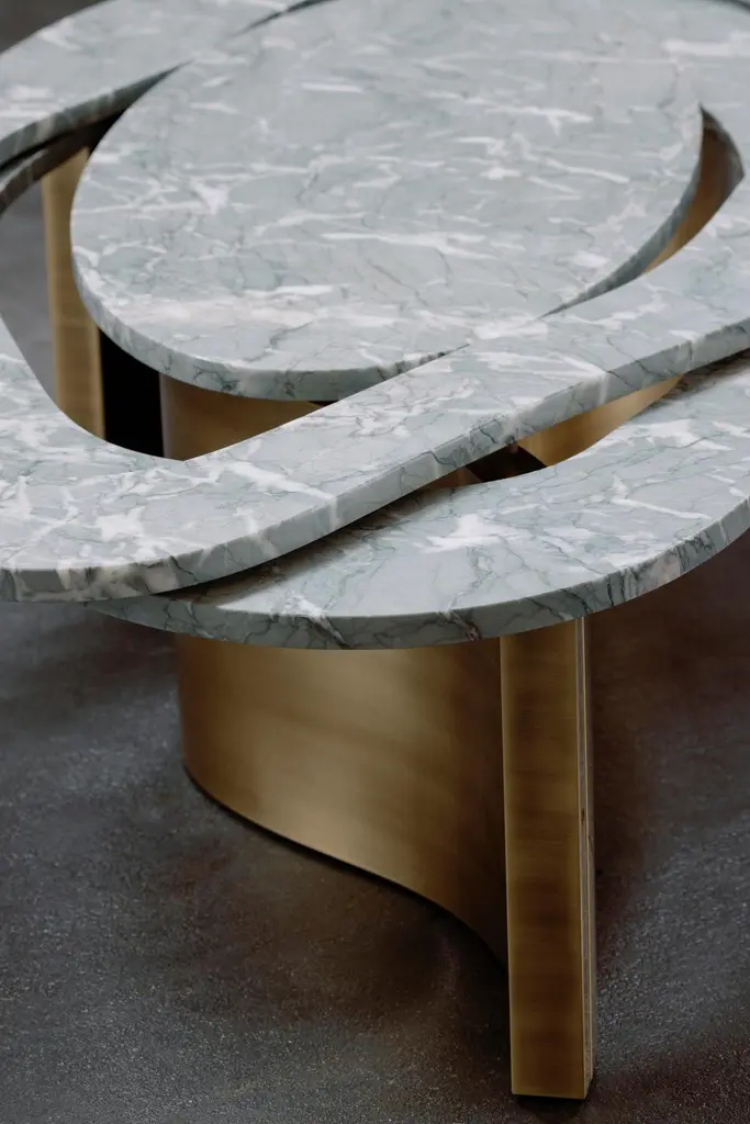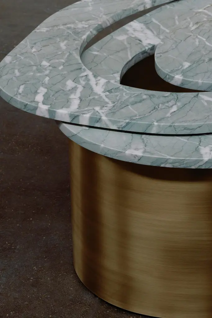 Mid-Century Modern Benagil Coffee Table, Contemporary Collection, Handcrafted in Portugal - Europe by Greenapple.The Benagil marble coffee table is a masterful expression of craftsmanship, where delicate precision meets exclusive design. Inspired by the organic contours of the Benagil sea caves, its marble top is a testament to the artisanal expertise behind its creation. The interplay of fluid lines and intricate detailing embodies the perfect harmony between design and artistry, transforming the Benagil marble coffee table into a true statement, exclusive piece.The Benagil coffee table is a statement piece that blends organic fluidity with luxurious materials. Its base is crafted from brushed and burnished, antique brass varnished in high-gloss, providing a warm metallic contrast to the stone surface. The tabletop consists of two organically shaped layers in polished Verde Antigua Marble in light green tones.The coffee table Benagil can be customized in terms of dimensions, materials and finishes.Benagil Coffee Table Material CodesST033 Verde Antigua Marble, Polished, Light Green, GlossME007 Brass, Brushed, Burnished, Varnished, Antique-Brass, High-GlossHandcrafted in Portugal - Europe by GreenappleUnique by design, Crafted by peopleGreenapple transforms contemporary spaces into exclusive narratives of design and craftsmanship. From custom-made furniture to bespoke interiors, each creation is a timeless work of art, shaped by master artisans who honor centuries-old techniques.Founded in 2005 by Sérgio Rebola and Rute Martins, Greenapple has earned global recognition among high-end clientele and leading design firms. While Rute designs each unique piece, Sérgio ensures uncompromising quality from design to production and from production to your home. We provide a seamless experience, offering short production lead times, worldwide delivery within 7 to 10 days, and white-glove service upon request.For U.S. clients, we can handle all customs clearance, cover duties, and offer white-glove service as well upon request.Cocktail Table, Center Table, Centre Table, Low Table, Tea Table