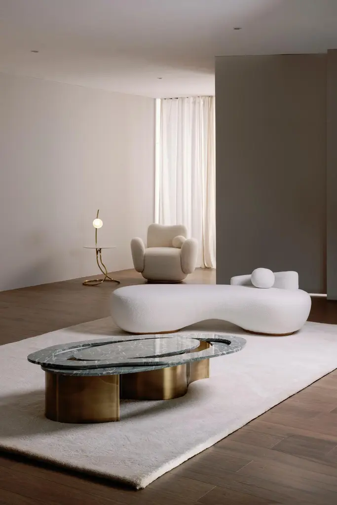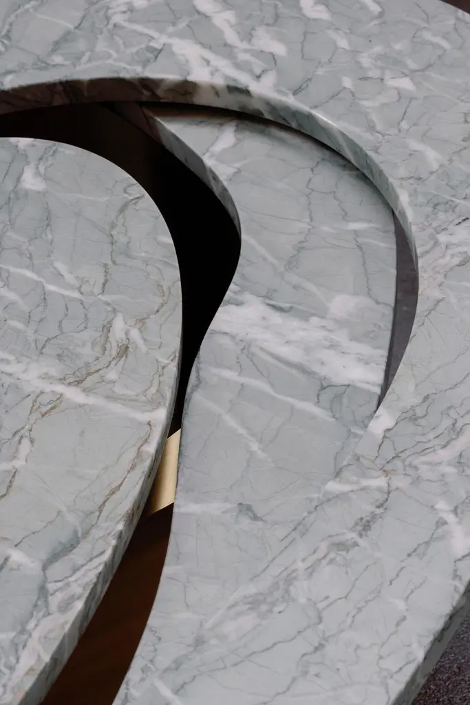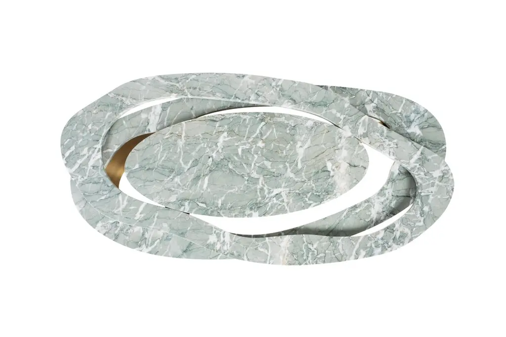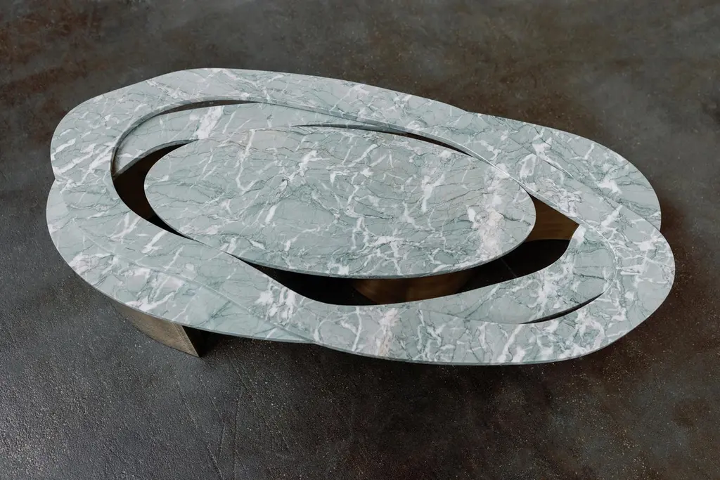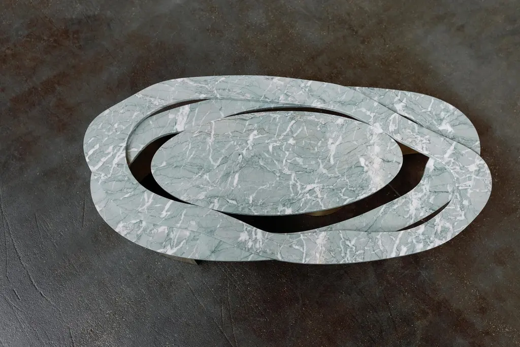 Mid-Century Modern Benagil Coffee Table, Contemporary Collection, Handcrafted in Portugal - Europe by Greenapple.The Benagil marble coffee table is a masterful expression of craftsmanship, where delicate precision meets exclusive design. Inspired by the organic contours of the Benagil sea caves, its marble top is a testament to the artisanal expertise behind its creation. The interplay of fluid lines and intricate detailing embodies the perfect harmony between design and artistry, transforming the Benagil marble coffee table into a true statement, exclusive piece.The Benagil coffee table is a statement piece that blends organic fluidity with luxurious materials. Its base is crafted from brushed and burnished, antique brass varnished in high-gloss, providing a warm metallic contrast to the stone surface. The tabletop consists of two organically shaped layers in polished Verde Antigua Marble in light green tones.The coffee table Benagil can be customized in terms of dimensions, materials and finishes.Benagil Coffee Table Material CodesST033 Verde Antigua Marble, Polished, Light Green, GlossME007 Brass, Brushed, Burnished, Varnished, Antique-Brass, High-GlossHandcrafted in Portugal - Europe by GreenappleUnique by design, Crafted by peopleGreenapple transforms contemporary spaces into exclusive narratives of design and craftsmanship. From custom-made furniture to bespoke interiors, each creation is a timeless work of art, shaped by master artisans who honor centuries-old techniques.Founded in 2005 by Sérgio Rebola and Rute Martins, Greenapple has earned global recognition among high-end clientele and leading design firms. While Rute designs each unique piece, Sérgio ensures uncompromising quality from design to production and from production to your home. We provide a seamless experience, offering short production lead times, worldwide delivery within 7 to 10 days, and white-glove service upon request.For U.S. clients, we can handle all customs clearance, cover duties, and offer white-glove service as well upon request.Cocktail Table, Center Table, Centre Table, Low Table, Tea Table