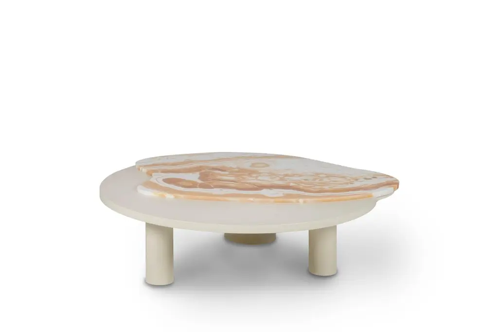 Contemporary Bordeira coffee table, Contemporary Collection, Handcrafted in Portugal - Europe by Greenapple.Designed by Rute Martins for the Contemporary Collection, the Bordeira modern coffee table was designed to add the essence of nature into the interior space by reimagining the captivating lines of Bordeira beach in a furniture piece. Through the sweeping curves, ocean meets the land in perfect harmony, creating a modern coffee table that conveys true freedom of movement.Bordeira combines fine craftsmanship and noble materials, becoming a Greenapple’s best-seller and a favorite piece among designers.Bordeira Coffee Table Material CodesFI176 Oyster white lacquer; semi glossST078 Egyptian Onyx; polishedHandcrafted in Portugal - Europe by GreenappleUnique by design, Crafted by peopleFounded in 2005 by Sérgio Rebola and Rute Martins, Greenapple designs and produces in-house luxury furniture for exclusive customers worldwide.Our own in-house production facility allows us to be obsessed with detail, and gives us the freedom to dedicate ourselves to the most demanding tailor-made and customized work. As Rute designs all the unique pieces, Sérgio assures the high-quality standards through the whole process - from design to production; from production to your home. Fine craftsmanship, whether perfected by experienced hands or state-of-the-art machinery is quintessential in delivering top quality experiences.