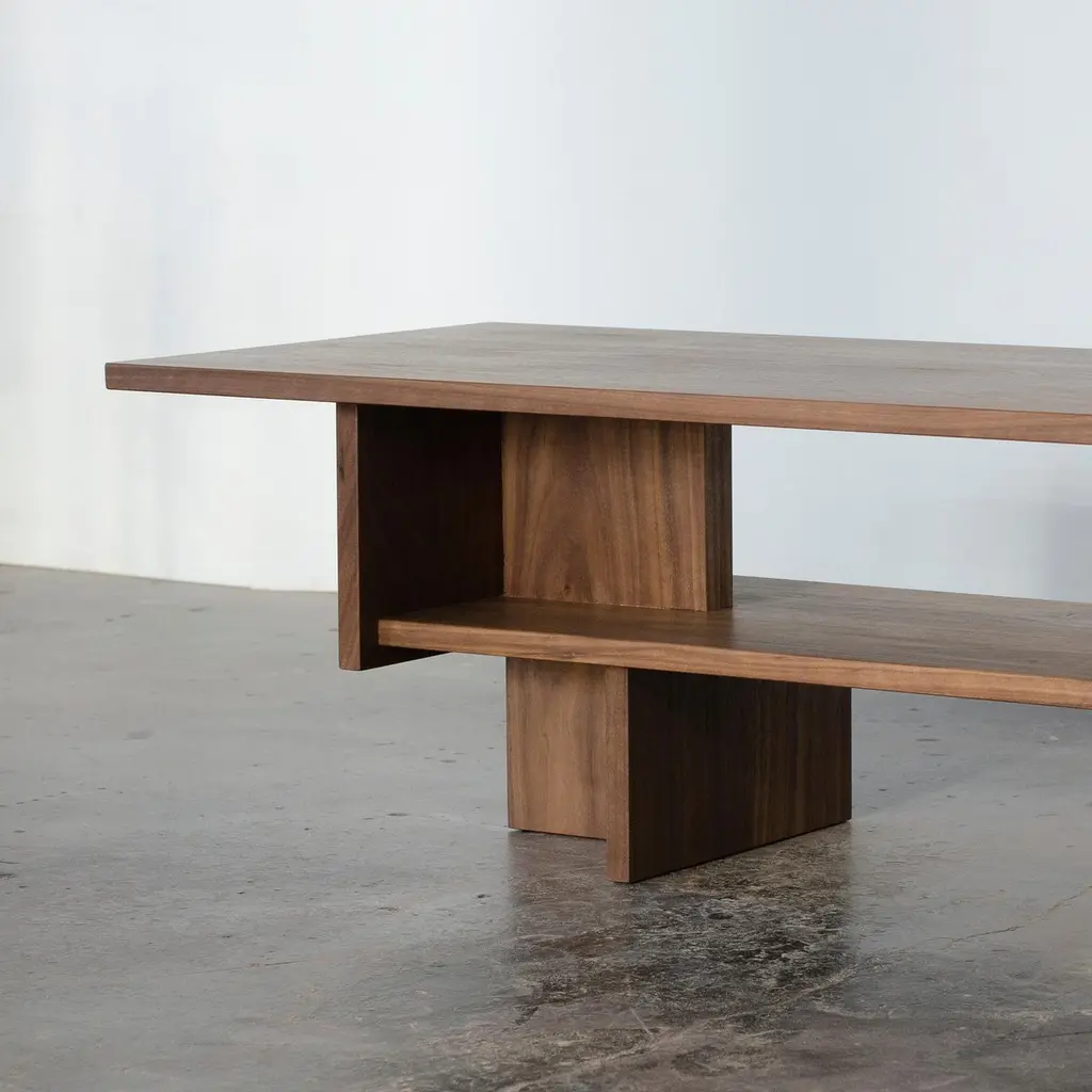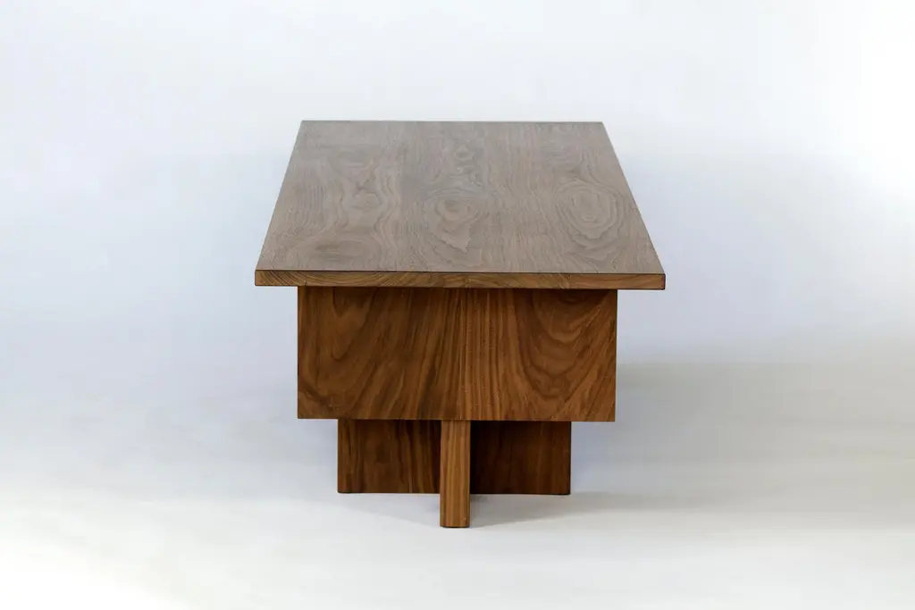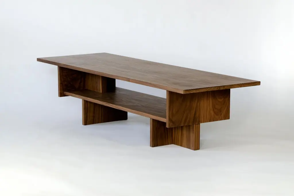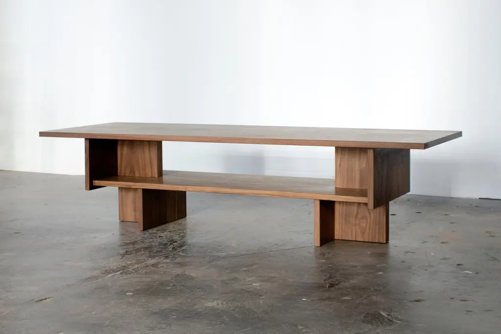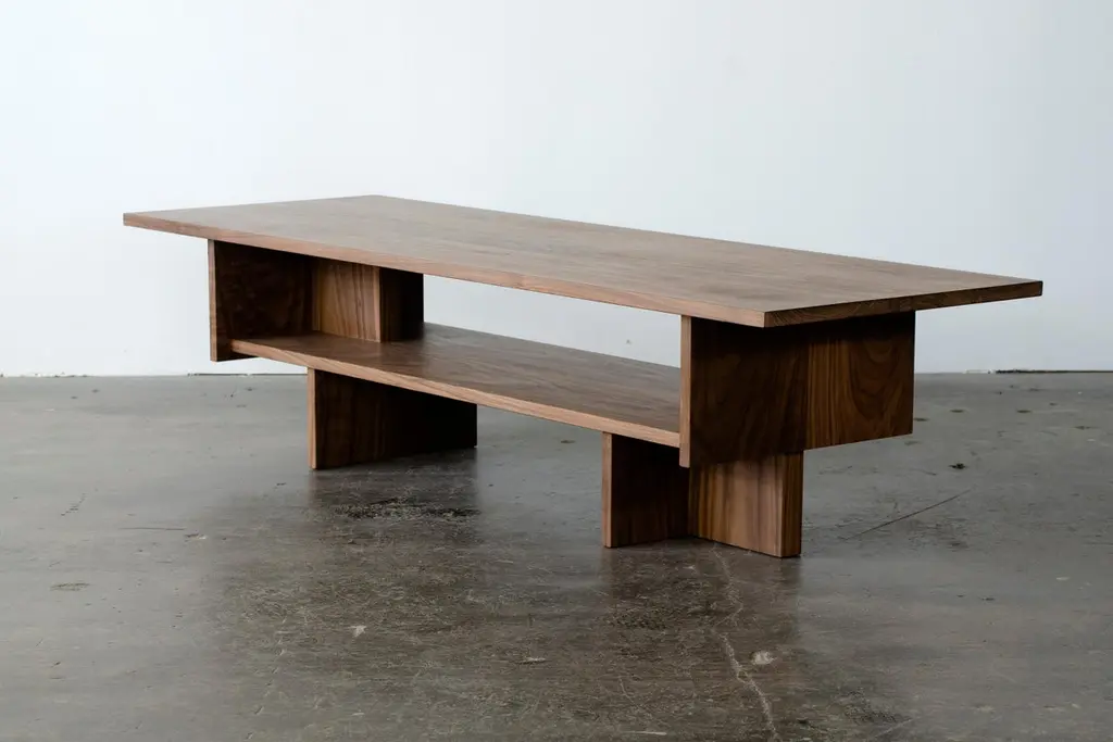Ballast table, named for the two hefty uprights which form its structure, is a generously sized coffee table. Careful attention to proportion and the arrangement of parts give the Ballast table it's characteristic form with nooks for storing books and other small objects. Constructed by hand using floating tenon joinery.