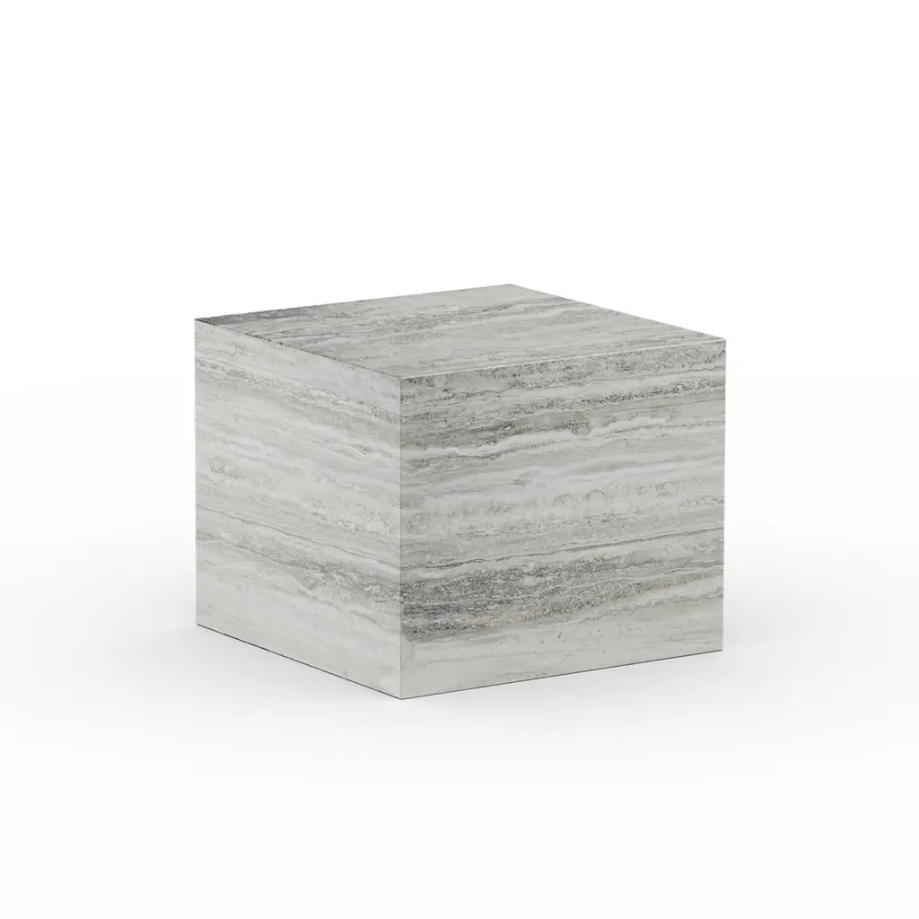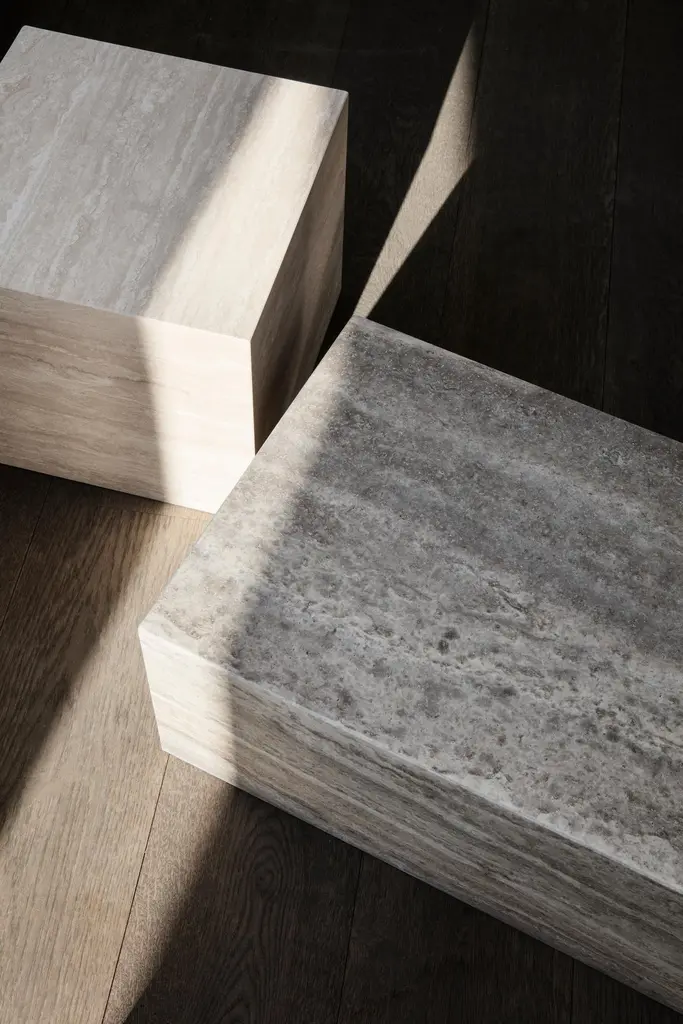 CUBISM GREY COFFEE TABLE BY NORR11 (Large)Design: Kristian Sofus Hansen and Tommy Hyldahl, 2023Mateirals: Grey Travertine stone slabs with felt bottom. The surface of the table is polished and untreated.DIMENSIONS- Small: Depth: 45 cm x Width: 45 x Height: 37 cm- Large: Depth: 50 cm x Width: 80 x Height: 30 cm (model shown on main image)CUBISM COLLECTIONMade from grey travertine stone, Cubism is all about embracing the qualities and beauty of the material, which for centuries has been used in classical architecture around the world. The natural stone has a tactile surface with small holes and incorretions, adding a tactile quality to the geometric shape.Cubism comes in two sizes and is suitable for many purposes, such as coffee tables, side tables, and podiums for exhibiting objects.Product facts:Surface can be slightly uneven and the color may vary a little due to its unique texture.Adds a sculptural and organic detail to any interior spaceFilt finishing on the bottom to prevent scratches on the floorMade in Denmark