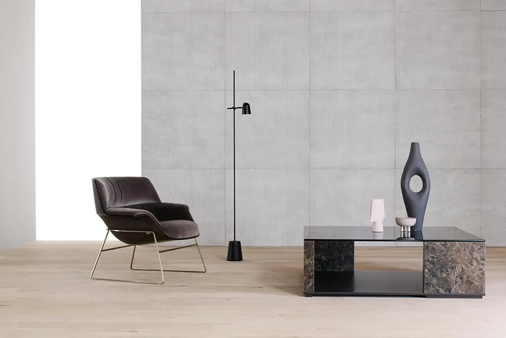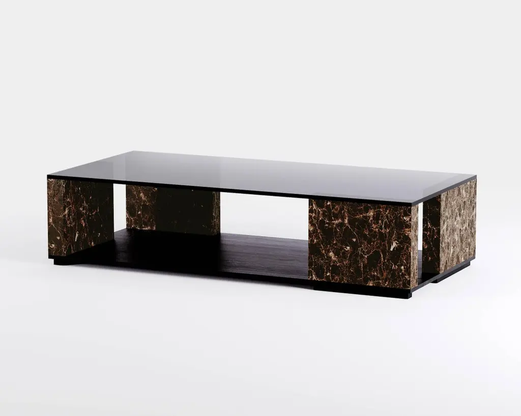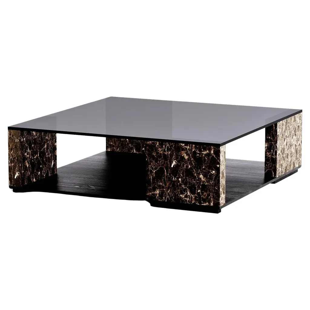 Quattropietre Coffee Table by Amura LabToptable : Smoked MirrorMarble legs : Emperador Dimensions : H. 35,5 x 150 x 70A coffee table that embodies the application of an architectonic stereotype to a furniture piece. Quattropietre represents the so-called “golden ratio” of classic architecture tradition, in a mathematical equilibrium of proportions. The volumes creating the shift between material and absence of material, give life to prospectic compositions, playing with “full” and “empty”. The creative process is thus born out of reduction, and its last trace lives on into the final element, timeless and always current. Quattropietre applies a rigorous, essential design to the materiality of elements.A young company that pursues the creation of timeless design settings with passion and accurate handmade attention, able to combine the memory of origins with the future of design. From the careful materials selection to the innovative design research, every step of the creation brings the permanent mark of the most genuine Southern atmosphere.