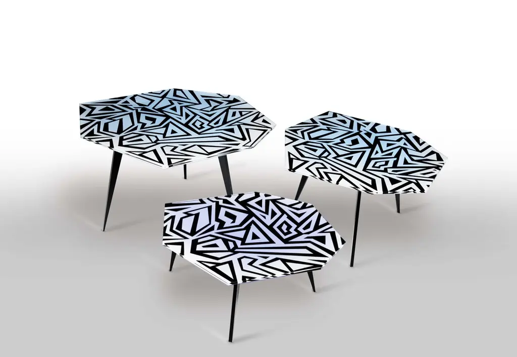 Contemporary Graffito Set Of Three Coffee Tables Black And White By Ghirò Studio