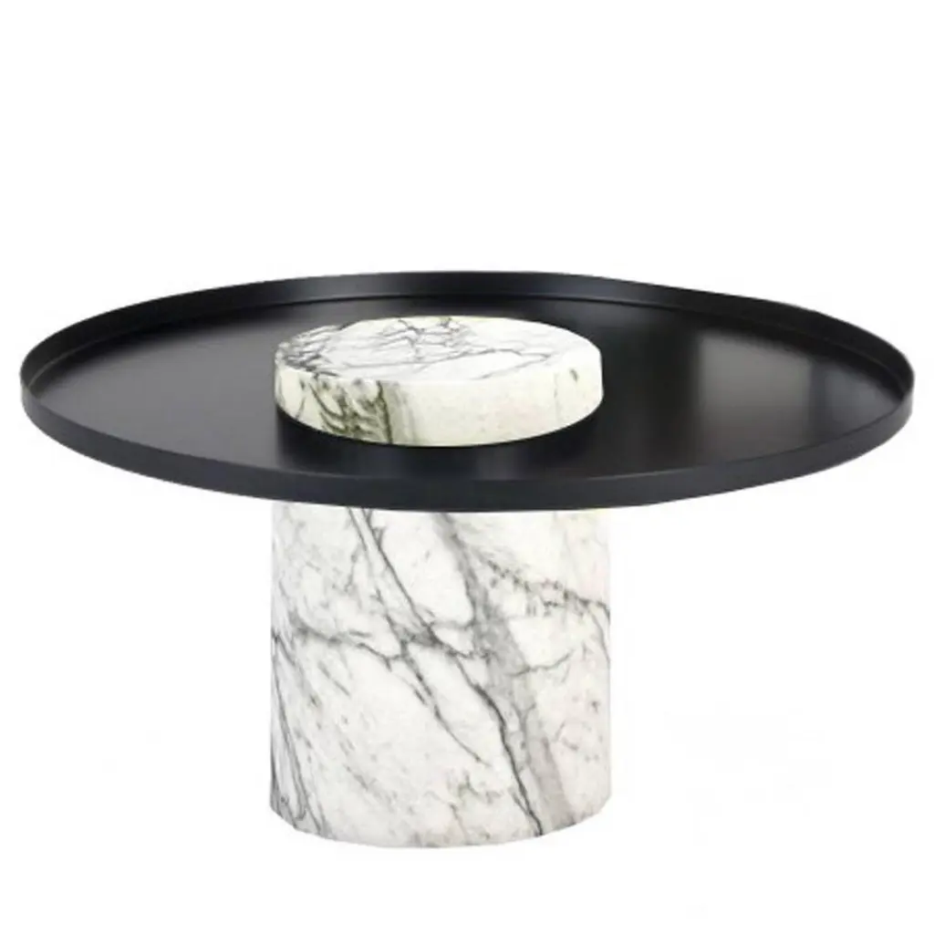 Contemporary guéridon, Sebastian HerknerThe salute table exists in 3 sizes, 3 different marbles for the column and 4 different finishes for the tray for a virtually endless number of configurations. In addition, salute can be made bespoke with special colors materials and stones.High salute:Height 22.4 inchesDiameter 16.1 inchesWeight: 95 lbsMedium saluteHeight 16.53 inchesDiameter 7.1 inchesTotal diameter 15.75 inchesWeight: 75 lbsLow saluteHeight 13 inchesDiameter 27.5 inchesWeight: 106 lbs.Salute is a family of tables mixing marble and metal for a high visual impact. As an occasional table, Salute is the perfect companion to your iconic armchair or next to a comfy sofa, with its clean lines and yet strong personality and impact. As a combination of tables, it is a sculptural coffee table that you can customize and adapt both in dimensions and colors.Salute is a family of guéridon tables.Each element can be used alone or combined together to play with different heights and formats as well as combinations of materials. The strong presence of the marble columnis lightened by the suspended shape of the metal tray.Sebastian Herkner is the rising star of German design. He collaborates extensively with the best Italian and German brands (Moroso, ClassiCon.) with product that share an tasteful and rigorous simplicity, with a focus on materials and textures.