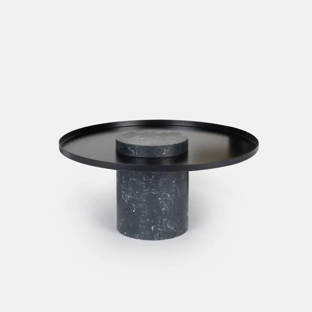 Contemporary Gueridon - Sebastian HerknerThe Salute table exists in 3 sizes, 3 different marbles for the column and 4 different finishes for the tray for a virtually endless number of configurations. In addition, Salute can be made bespoke with special colors materials and stones.High salute:Height 22.4 inchesDiameter 16.1 inchesWeight: 95 lbsMedium saluteHeight 16.53 inchesDiameter 7.1 inchesTotal diameter 15.75 inchesWeight: 75 lbsLow saluteHeight 13 inchesDiameter 27.5 inchesWeight: 106 lbs.Salute is a family of tables mixing marble and metal for a high visual impact. As an occasional table, Salute is the perfect companion to your iconic armchair or next to a comfy sofa, with its clean lines and yet strong personality and impact. As a combination of tables, it is a sculptural coffee table that you can customize and adapt both in dimensions and colors.Salute is a family of Gueridon tables.Each element can be used alone or combined together to play with different heights and formats as well as combinations of materials. The strong presence of the marble columnis lightened by the suspended shape of the metal tray.Sebastian Herkner is the rising star of German design. He collaborates extensively with the best Italian and German brands (Moroso, Classicon,..) with product that share an tasteful and rigorous simplicity, with a focus on materials and textures.