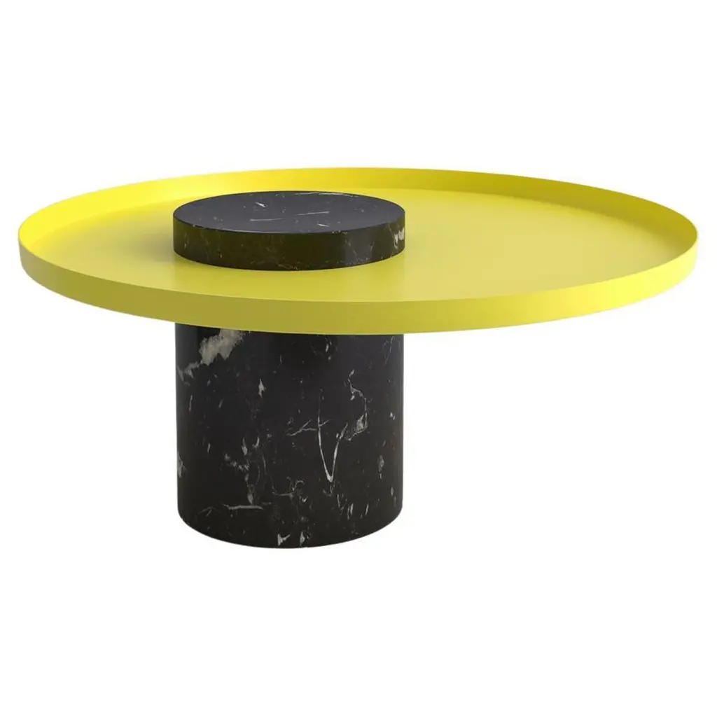 Contemporary Gueridon, Sebastian HerknerThe salute table exists in 3 sizes, 3 different marbles for the column and 4 different finishes for the tray for a virtually endless number of configurations. In addition, Salute can be made bespoke with special colors materials and stones.High salute:Height 22.4 inchesDiameter 16.1 inchesWeight: 95 lbsMedium saluteHeight 16.53 inchesDiameter 7.1 inchesTotal diameter 15.75 inchesWeight: 75 lbsLow saluteHeight 13 inchesDiameter 27.5 inchesWeight: 106 lbs.Salute is a family of tables mixing marble and metal for a high visual impact. As an occasional table, Salute is the perfect companion to your iconic armchair or next to a comfy sofa, with its clean lines and yet strong personality and impact. As a combination of tables, it is a sculptural coffee table that you can customize and adapt both in dimensions and colors.Salute is a family of Gueridon tables.Each element can be used alone or combined together to play with different heights and formats as well as combinations of materials. The strong presence of the marble columnis lightened by the suspended shape of the metal tray.Sebastian Herkner is the rising star of German design. He collaborates extensively with the best Italian and German brands (Moroso, Classic on) with product that share an tasteful and rigorous simplicity, with a focus on materials and textures.