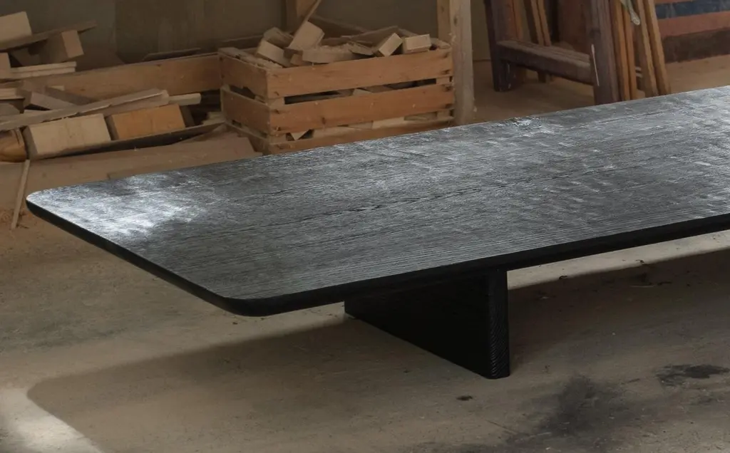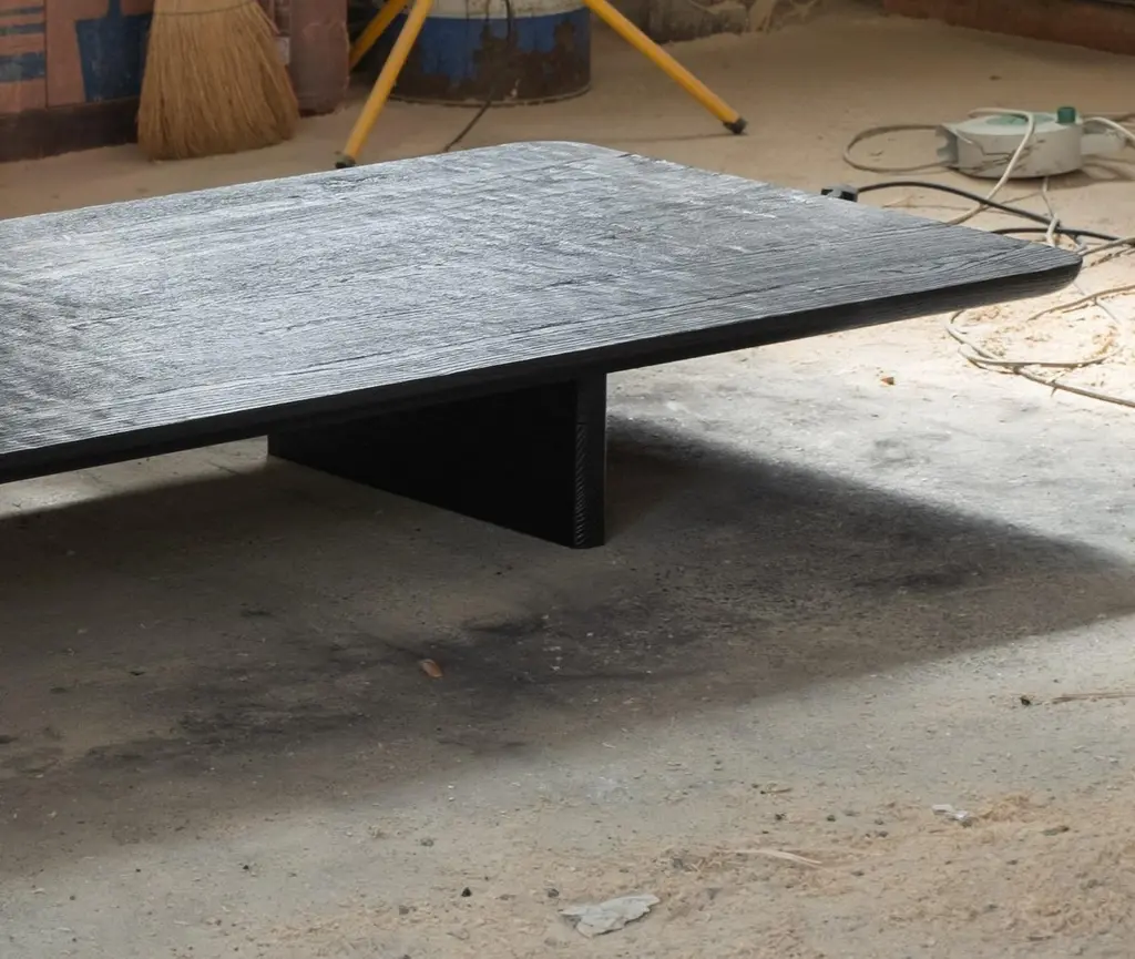 Contemporary Handmade Black Burned Oak Low Coffee Table By Dennis Kaiser