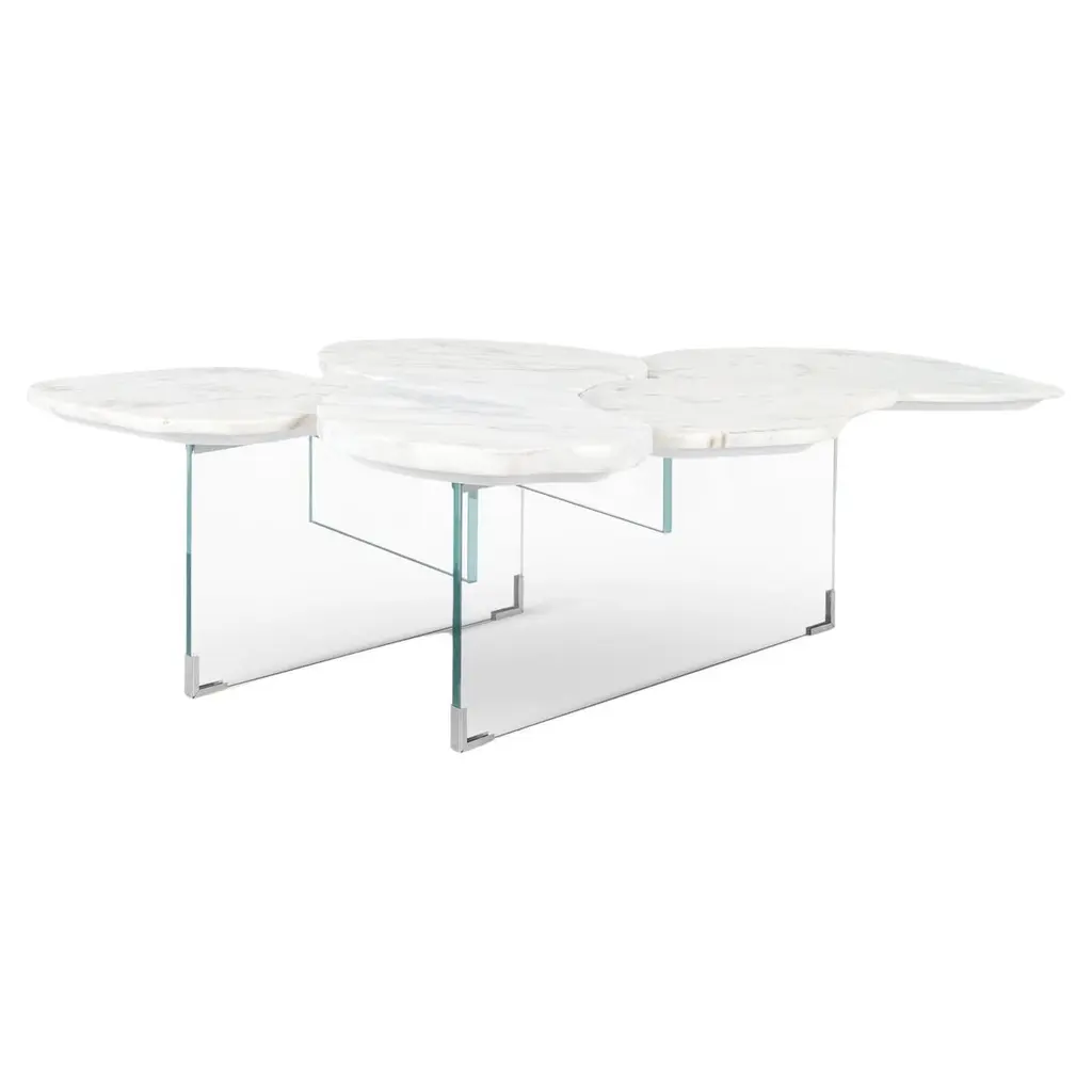 Contemporary Infinity Coffee Table, Modern Collection, Handcrafted in Portugal - Europe by GF Modern.The Infinity marble coffee table captures the passage of time in an infinite gaze. Featuring a petal-shaped top in Calacatta marble, Infinity unveils a flowing and graceful design. Meticulously crafted to be the centerpiece in modern living rooms, this marble coffee table captivates the attention with each encounter.Infinity Coffee Table Material CodesFI043 White lacquer; high-gloss finishST020 Calacatta Bianco marble; bush hammeredME001 Polished stainless steelGL009 Ultra clear glassHandcrafted in Portugal - Europe by GreenappleUnique by design, Crafted by peopleFounded in 2005 by Sérgio Rebola and Rute Martins, Greenapple designs and produces in-house luxury furniture for exclusive customers worldwide.Our own in-house production facility allows us to be obsessed with detail, and gives us the freedom to dedicate ourselves to the most demanding tailor-made and customized work. As Rute designs all the unique pieces, Sérgio assures the high-quality standards through the whole process - from design to production; from production to your home. Fine craftsmanship, whether perfected by experienced hands or state-of-the-art machinery is quintessential in delivering top quality experiences.