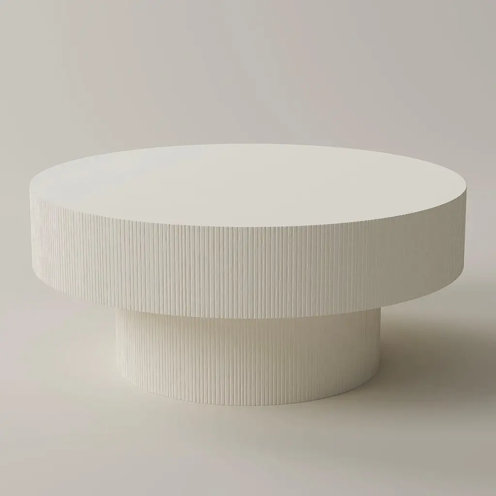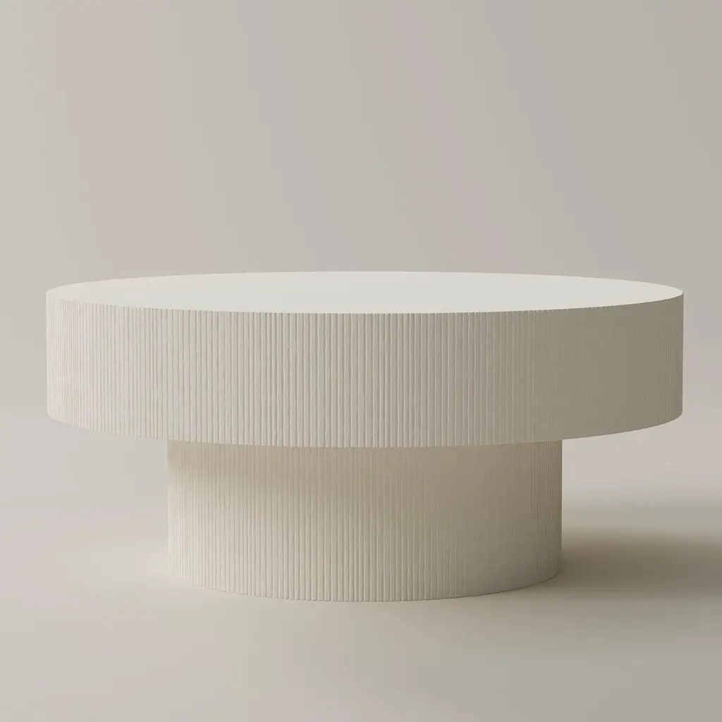Contemporary Jesmonite coffee table - Pilotis carved table by Malgorzata Bany.Pilotis carved table, a multifunctional statement piece crafted from Jesmonite. The latest addition to the ‘Pilotis’ range, the table encompasses the pure, clean aesthetic rooted in the principles of this collection. Pilotis Low Table was inspired by ‘chabudai’, a short-legged table commonly found in Japanese homes. As well as drawing influence from the aesthetic elements of the ‘chabudai’, Malgorzata was also influenced by the ceremonial and multifunctional nature of the table, often the centerpiece which family life revolves around. Taking this essence andcombining it with elements of the traditional Western coffee table, Malgorzata has designed a piece of note, accommodating and impressive in equal measures. Design: Malgorzata BanyMaterial: Jesmonite stoneDimensions (in): Diameter 31.5 x Height 13.78"Dimensions (cm): Diameter 80 x Height 35 cmMade by hand, in United Kingdom.