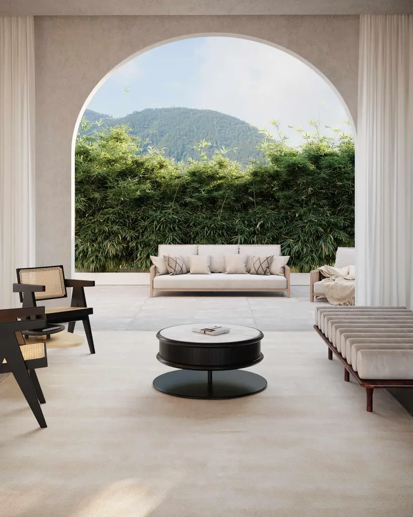 Contemporary Matias Sagaría Round Coffee Table Italian Walnut Marble Top Grey
