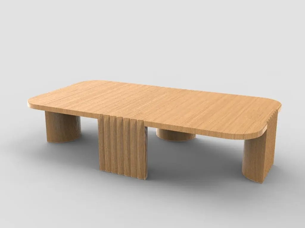 Contemporary Modern European Caravel Low Coffee Table In Oak By Collector