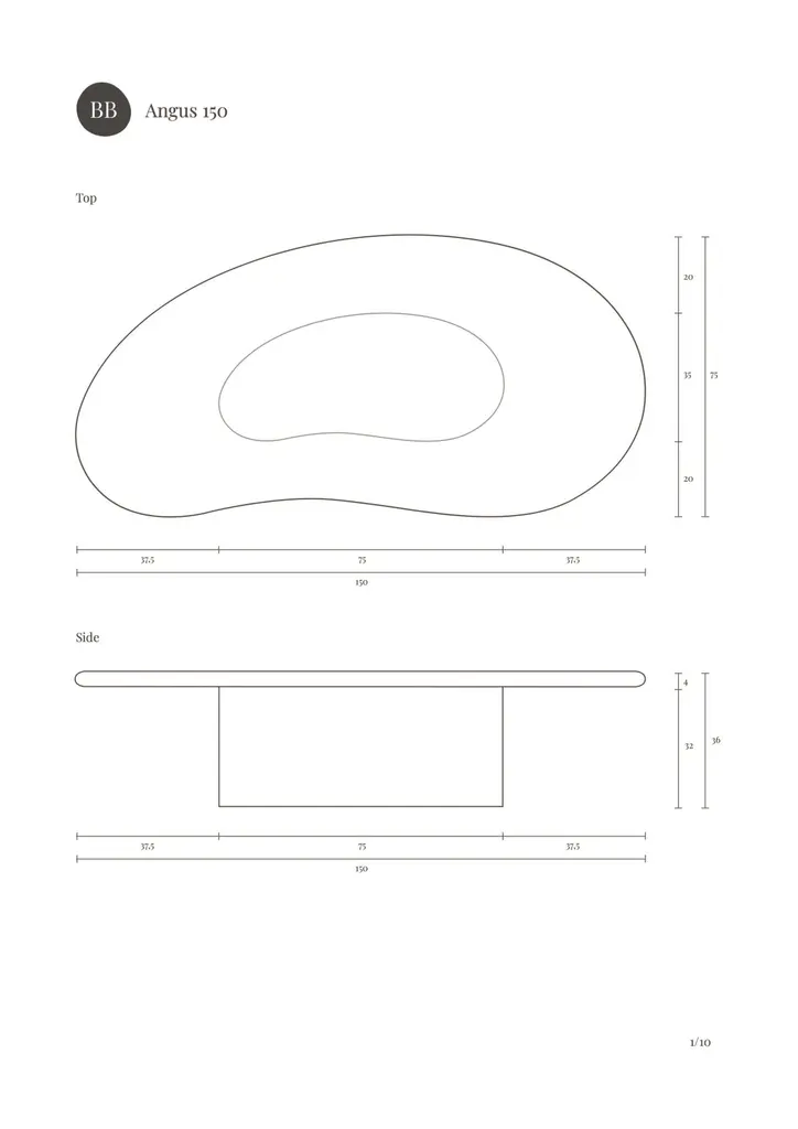 A contemporary Belgian design, handcrafted in natural plaster with a textured, earthy character. The surface is stain-resistant, easy to maintain, and pleasantly soft to the touch, unlike the cold feel of natural stone.The Angus (Latin adjective “angustus” /an'gus. tus/ : narrow, strait)Standard version for indoor use. Outdoor finish available on demand. (+20%).Each piece is built on a wooden base and finished by hand with multiple layers of Mortex®, a premium plaster known for its durability in demanding applications such as bathrooms, stairs, and swimming pools. Mortex contains no epoxy or polyurethane resins.The plaster is applied using the a fresco method: Each layer is applied before the previous one has fully set, creating a perfect bond and a rich, seamless surface. The result is a tactile object with depth, warmth, and individuality. Subtle irregularities, natural shades, and variations are the signature of the craftsman, ensuring that no two pieces are ever the same.Thanks to its understated, versatile character, the table integrates beautifully into a wide range of interior styles: from wabi-sabi and japandi to brutalism, minimalism, or contemporary design.Available in more than 80 colours, with endless options in size and shape. Samples are recommended, as slight variations in tone and texture are inherent to the artisanal process and the living nature of the material.Colour: BM32.5 Camel Ultra LightDisclaimer:The colours shown may differ from the colours of the applied product. We recommend ordering a sample. Please keep in mind that differing effects and nuances are to be expected when you compare the finished product to the provided sample. This is the result of the application process and the characteristics of the material. Due to the handmade character dimensions may vary by up to 1.5 cm.The customer is responsible for ensuring that products are used, handled, and maintained strictly in accordance with BB UNITED BV’s instructions and guidelines, provided with the product and/or available on demand. Warranty and liability shall not apply in cases of improper use, lack of maintenance, exposure to unsuitable environments, or use of cleaning products or methods not approved by BB UNITED BV.While certain products are treated and intended for outdoor use, BB UNITED BV cannot guarantee that products will remain unaffected under all climatic or environmental conditions. The customer is responsible for ensuring suitable placement, protection, and maintenance adapted to local weather circumstances. BB UNITED BV shall not be liable for weather-related damage or natural wear and tear.BB UNITED BV shall under no circumstances be liable for indirect, consequential, or incidental damages, including but not limited to shipping costs, customs duties, import taxes, installation costs, third-party claims, or loss of profit.