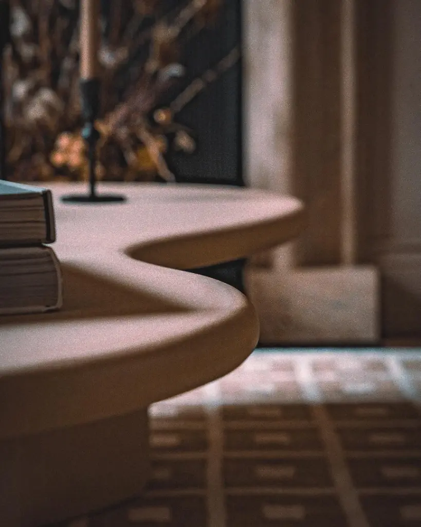 A contemporary Belgian design, handcrafted in natural plaster with a textured, earthy character. The surface is stain-resistant, easy to maintain, and pleasantly soft to the touch, unlike the cold feel of natural stone.Standard version for indoor use. Outdoor finish available on demand. (+20%).Latin adjective “ovum” /ˈo.u̯um/: eggEach piece is built on a wooden base and finished by hand with multiple layers of Mortex®, a premium plaster known for its durability in demanding applications such as bathrooms, stairs, and swimming pools. Mortex contains no epoxy or polyurethane resins.The plaster is applied using the a fresco method: Each layer is applied before the previous one has fully set, creating a perfect bond and a rich, seamless surface. The result is a tactile object with depth, warmth, and individuality. Subtle irregularities, natural shades, and variations are the signature of the craftsman, ensuring that no two pieces are ever the same.Thanks to its understated, versatile character, the table integrates beautifully into a wide range of interior styles: from wabi-sabi and japandi to brutalism, minimalism, or contemporary design.Available in more than 80 colours, with endless options in size and shape. Samples are recommended, as slight variations in tone and texture are inherent to the artisanal process and the living nature of the material.Colour: BM06 Caffe Latte StrongDisclaimer:The colours shown may differ from the colours of the applied product. We recommend ordering a sample. Please keep in mind that differing effects and nuances are to be expected when you compare the finished product to the provided sample. This is the result of the application process and the characteristics of the material. Due to the handmade character dimensions may vary by up to 1.5 cm.The customer is responsible for ensuring that products are used, handled, and maintained strictly in accordance with BB UNITED BV’s instructions and guidelines, provided with the product and/or available on demand. Warranty and liability shall not apply in cases of improper use, lack of maintenance, exposure to unsuitable environments, or use of cleaning products or methods not approved by BB UNITED BV.While certain products are treated and intended for outdoor use, BB UNITED BV cannot guarantee that products will remain unaffected under all climatic or environmental conditions. The customer is responsible for ensuring suitable placement, protection, and maintenance adapted to local weather circumstances. BB UNITED BV shall not be liable for weather-related damage or natural wear and tear.BB UNITED BV shall under no circumstances be liable for indirect, consequential, or incidental damages, including but not limited to shipping costs, customs duties, import taxes, installation costs, third-party claims, or loss of profit.