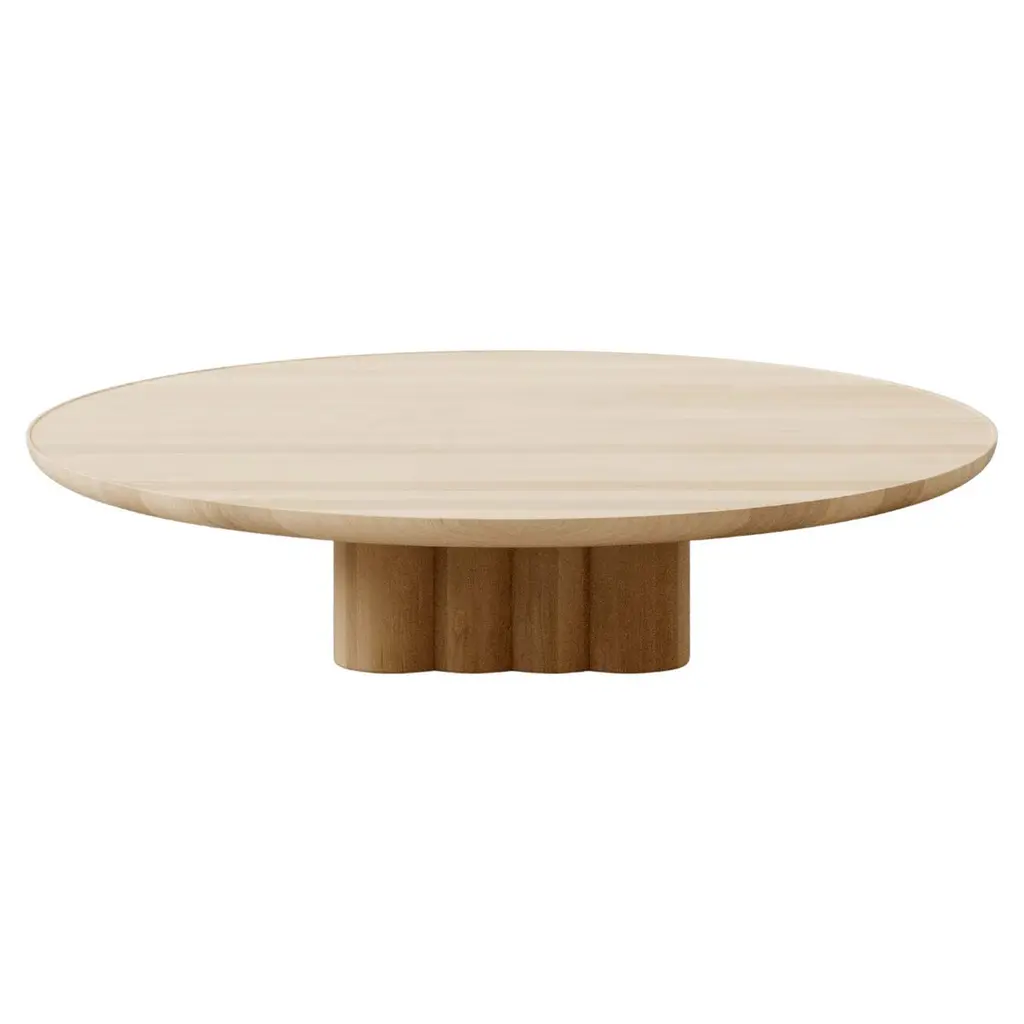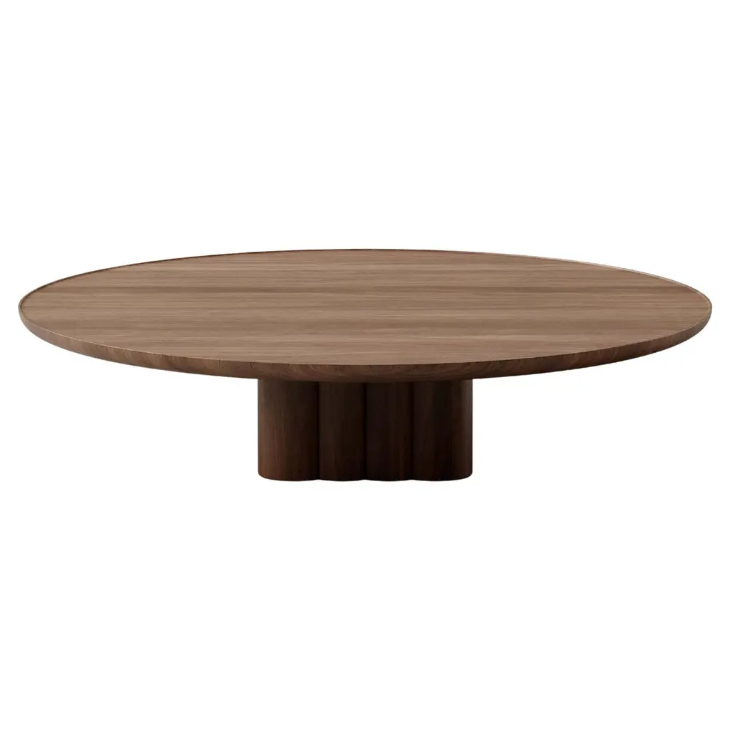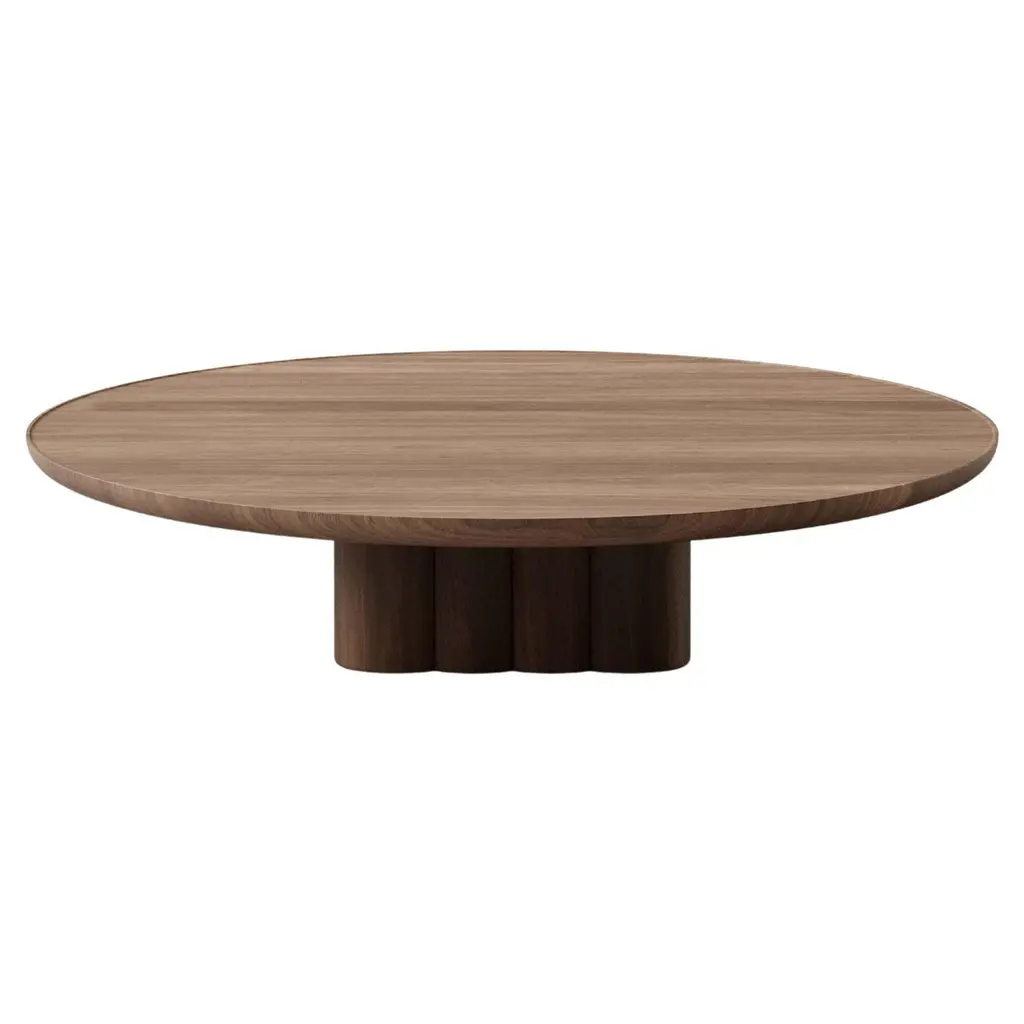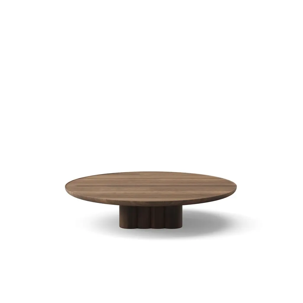 'Plush' Coffee Table designed by Jacob Plejdrup for DK3Solid wood tabletop and legsHandmade in DenmarkModel shown on main picture:Wood: Smoked OakTable Height: 23 cmTabletop: D. 110 cmTable height- 23 cm- 29 cmTabletop dimensions:– D. 110 cm– D. 130 cmTable top thickness: 3 cmWood:– Oak– Lacquered Oak– White Oil Oak– Soap Oak– Smoked oak– Walnut– Lacquered Walnut-----With its low profile and impressive tabletop, the Plush Coffee Table extends the design language of the Plush Collection into the lounge area. It transforms the smooth shapes into an expansive centrepiece perfectly scaled for large, low-slung sofas.While the tabletop provides ample surface for books and decoration, the table’s visual lightness is achieved through the gently sloping edge. The table is crafted from solid wood, and the natural character of the wood is accentuated by the unique base construction and the soft signature shapes.