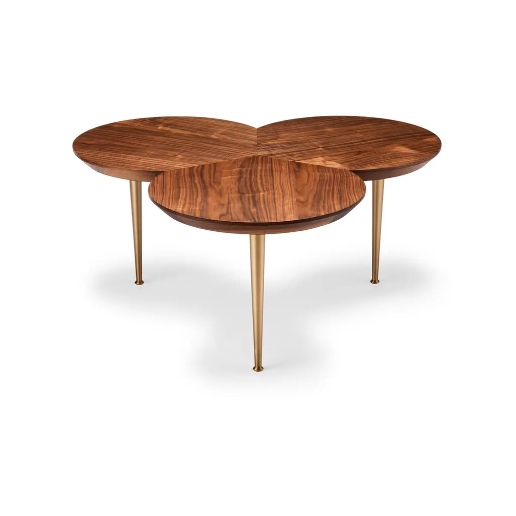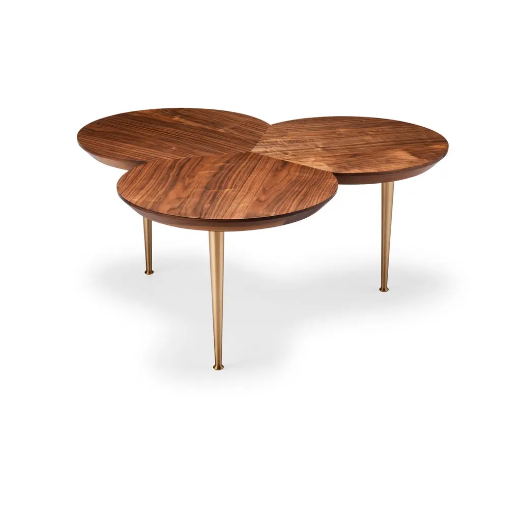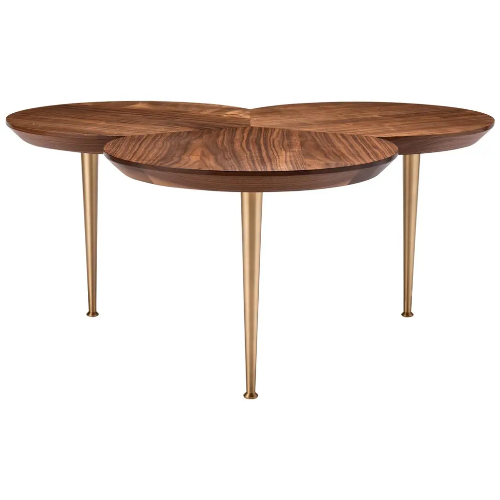 Contemporary Stem Coffee Table In Natural Walnut With Solid Brass Legs