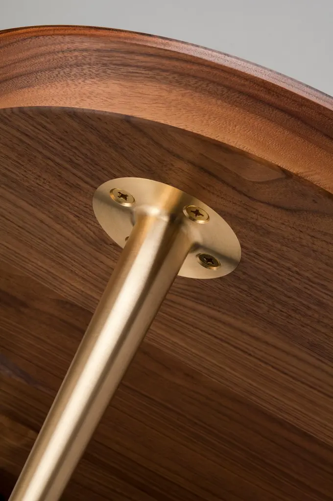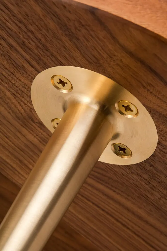 With its trefoil shaped top featuring Directional veneer and elegant stem like solid brass legs, this table can integrate or stand alone as a quiet piece of elegant design.Shown here: in natural oiled walnut and brass. The top is made from solid and veneered timber. The legs are precision engineered from solid brass.We finish our brass legs with Renaissance wax. Over time the finish will gently patina.Registered Design No. 4042284Each Stuart Scott piece is built by hand in our workshop in Wiltshire, England. Nothing is mass-produced. This ensures complete attention to detail, structural integrity and sheer build quality. We never compromise. When we finish each piece, it is signed and numbered: a unique handmade masterpiece.