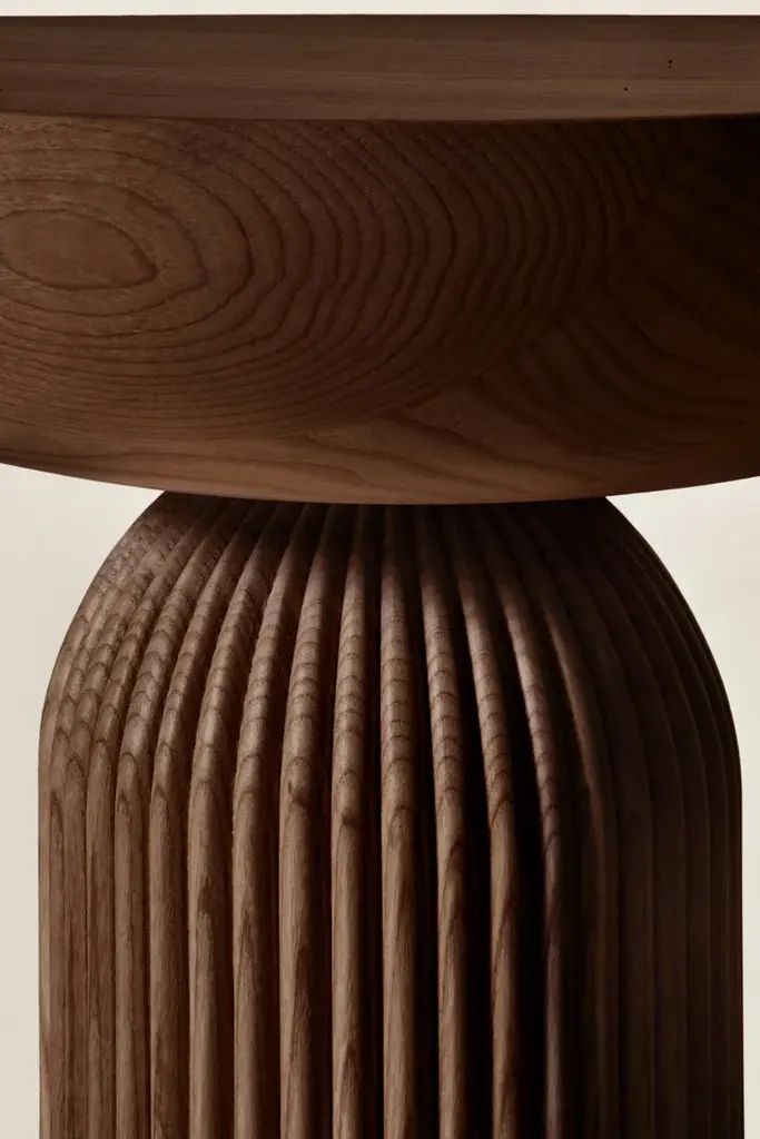 Convesso seems to defy gravity, with the monolithic top balancing on the vertical base. This contrast between surfaces and illusion enhances the beauty of solid ash wood. The Convesso coffee table embodies the essence of our 2023 collection, made in collaboration with the designers from Cono Studio. A contemporary piece of furniture, on trend yet true to the quality, originality, and elegance of authentic Made in Italy craftmanship. Convesso is built on the contrast between the rhythmic base and the monolithic top, both with a circular section. The horizontal, massive element looks suspended in balance on the spherical junction point of the vertical foundation. Both surface and visual thickness accentuate the strong material quality of the ash wood furniture. TOP: Solid top in white ash. LEGS: Solid white ash wood with exposed millings. Material: White Ash solid wood Finishing: Natural, acrylic finish - Brown, acrylic finish - Black, acrylic finish Maintenance: For cleaning, we recommend a soft cloth moistened with water. Avoid aggressive alcohol-based detergents.Dale is constantly looking for new perspective and inspirations. In collaboration with the designers from Cono Studio, we have produced a collection of contemporary furniture in solid white ash wood. A new language for Dale Italia, with an essential and current aesthetic, capable to create warm, intimate and welcoming ambientes that feel like home. Discover the new range of white ash solid wood furniture with a contemporary design. Essential lines, contrasts and rhythms create stylish and exclusive elements. Monolithic and geometrical shapes create balances between solids and voids. In an warm, oneiric vision of space, rhythms of surfaces and shadows enhance each detail. A set complete of chair, table, coffee table, sideboard, and mirror, where space and matter become balance and shadow enhances each detail. Introducing Ash Wood For the first time, Dale Italia introduce a new variety of solid wood. White ash, available in the finishes: black, brown, and natural. Essential yet impactful. Contemporary yet warm. A semi-hard, light and durable wood, which adds brightness to the interior with an ultra-modern touch.Embracing a new language Dale Italia’s new collection embraces a contemporary language that expresses our values of quality craftsmanship and Made in Italy excellence. The solid ash wood furniture stands out for its monolithic, essential and geometric shapes. Whilst the rhythm of the surfaces creates a seductive play of shadows. Ours is an oneiric vision of space, to create an intimate, natural and warm ambient that feels like home.Dialoguing with Cono Studio The collection comes from the synergic dialogue between Dale Italia and the designer studio Cono Studio. Another first for us, purposed to involve our clients in an exclusive experience of contemporary furniture. As a result, each element expresses its own unique identity, but always in armory with the full collection.