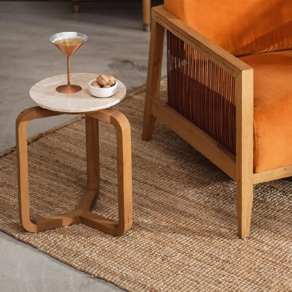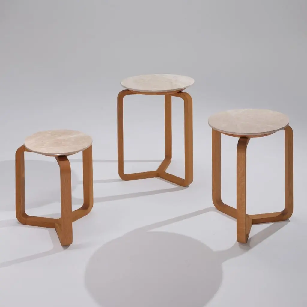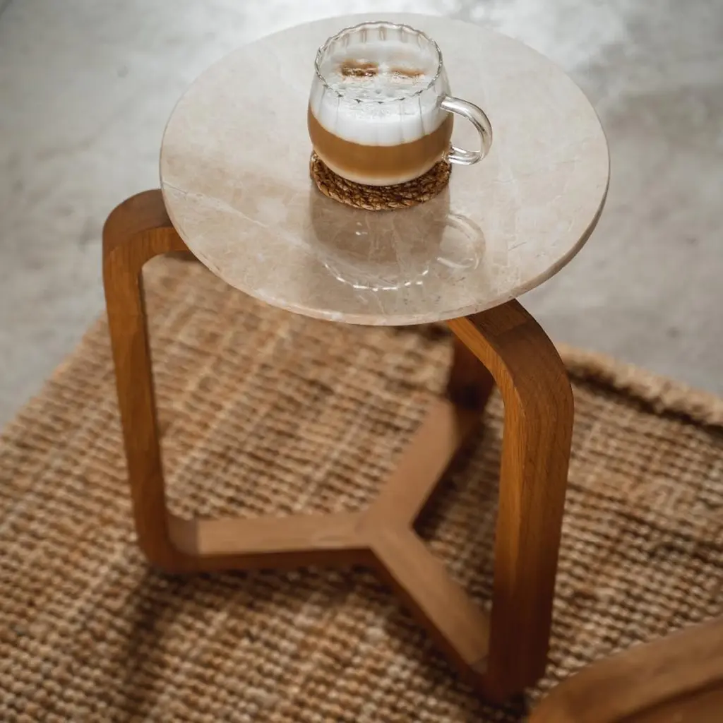 Cony Marble Coffee Table R30, Solid Oak Wood And Marble, Hand-Crafted