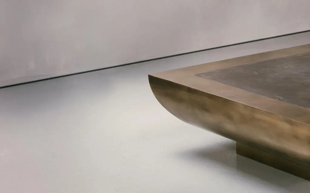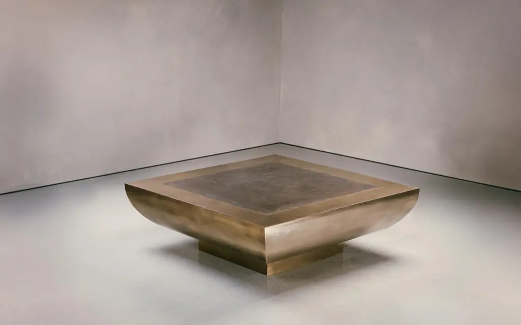 Drawing from the industrial elegance of ship hulls and the enduring strength of architectural corbels, we pay testament to balance and resilience. Echoing the sweeping curves that cut through water and the sturdy forms that uphold historic structures, this design celebrates both fluidity and fortitude. The interplay of intersecting forms highlights the hidden architecture of strength, revealing what typically lies beneath the surface.Hand crafted in the North to order.Images above shows a light waxed brass finish with an etched top. Hand crafted to order in the North. Bespoke finishes and sizes are available.Measures: 90cm length x 90cm width x 40cm height.Custom finishes and sizes available upon request.Made to order in 12 weeks.Price excludes VAT.