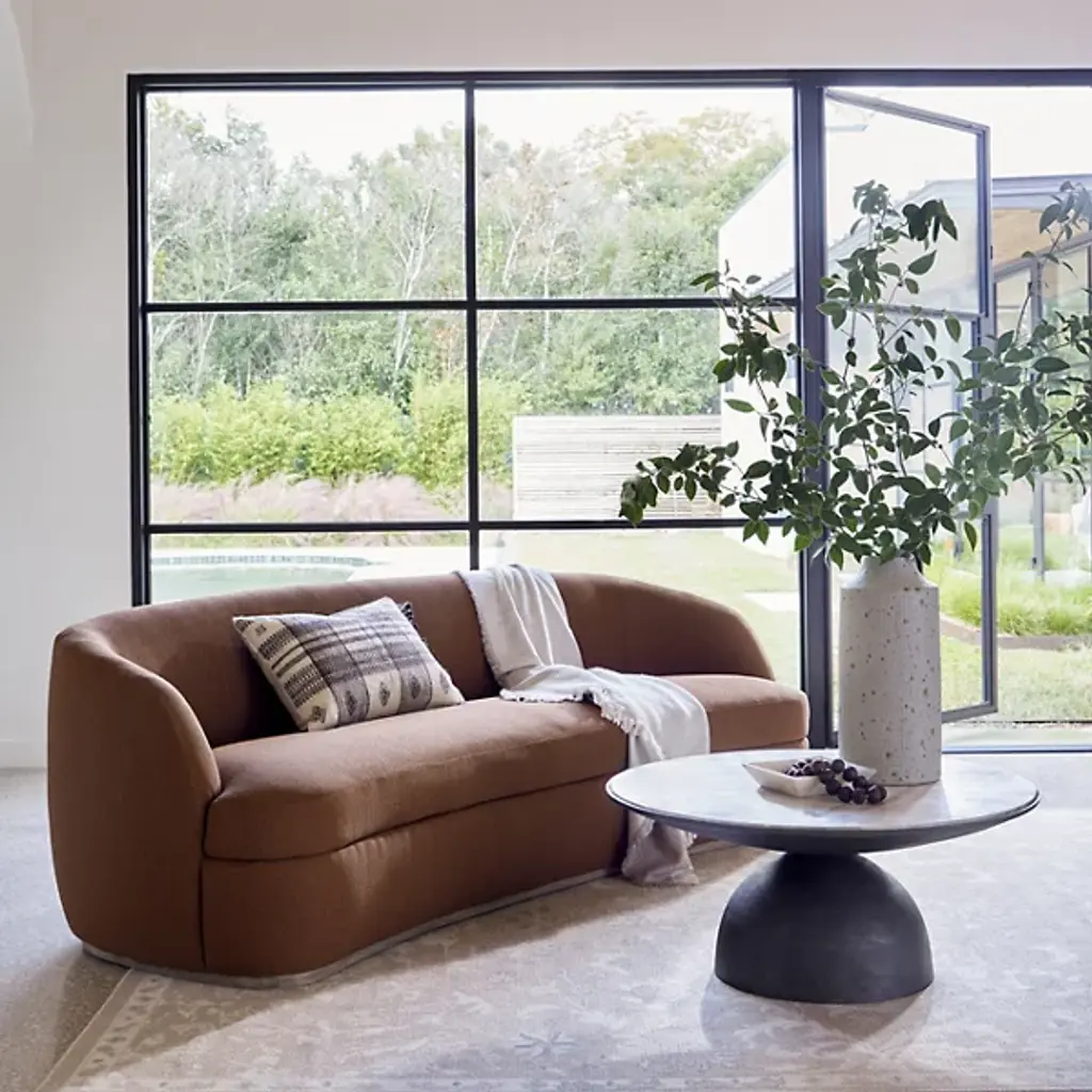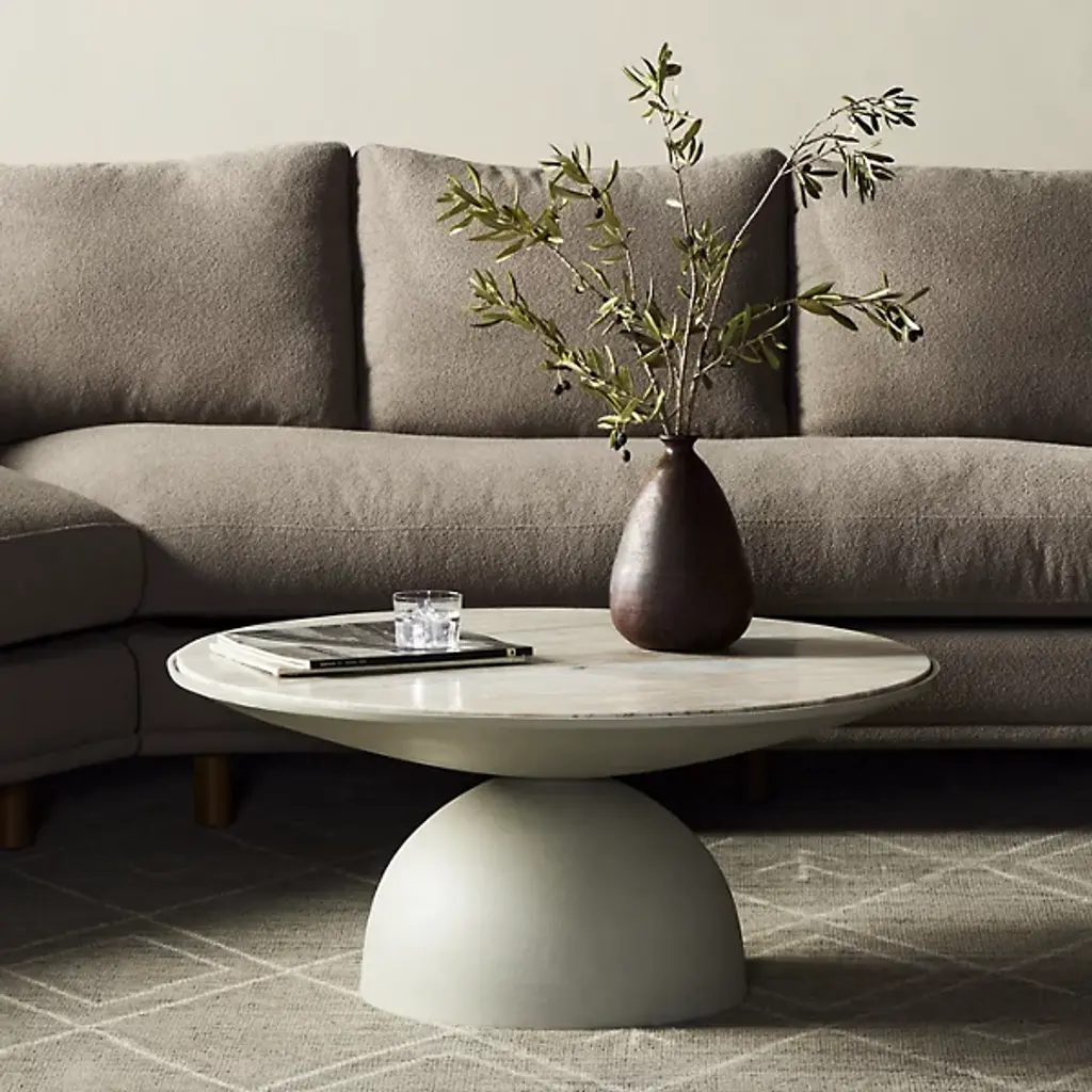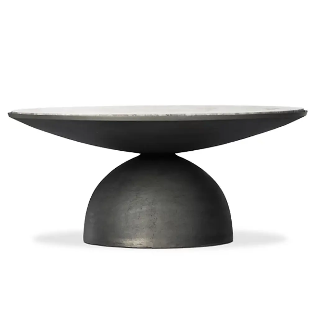 Decorate your living space with the finely crafted Corbett Coffee Table by Four Hands. A streamlined slab of gorgeous marble serves as your fixture’s tabletop. Nestled within a curved frame, this marble surface is wall-balanced overtop of a dome-shaped base of fine aluminum. The Corbett Coffee Table’s contemporary aesthetic lends to its versatility. Proudly place this furnishment in the center of your living room and provide a foundation for your contained beverages.