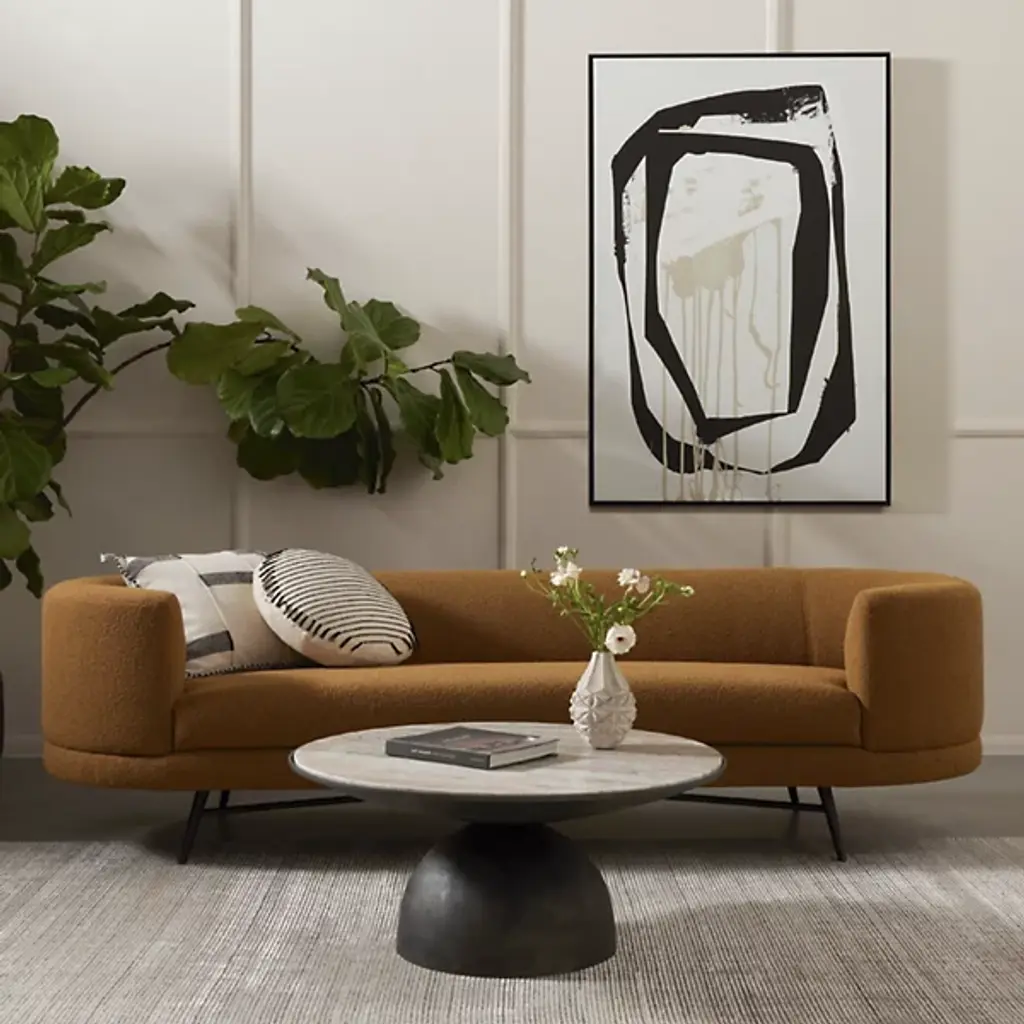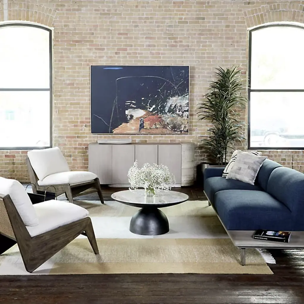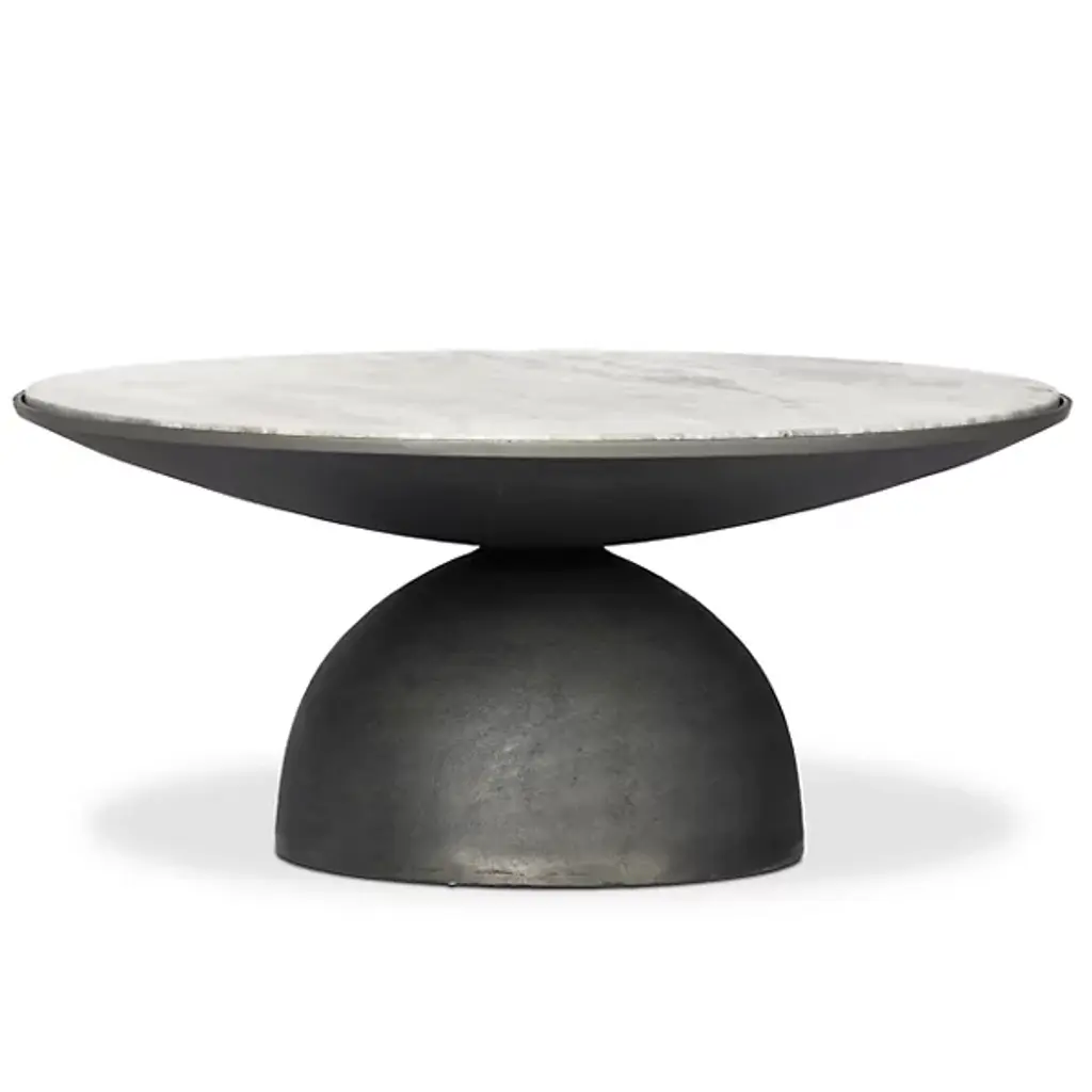 Decorate your living space with the finely crafted Corbett Coffee Table by Four Hands. A streamlined slab of gorgeous marble serves as your fixture’s tabletop. Nestled within a curved frame, this marble surface is wall-balanced overtop of a dome-shaped base of fine aluminum. The Corbett Coffee Table’s contemporary aesthetic lends to its versatility. Proudly place this furnishment in the center of your living room and provide a foundation for your contained beverages.
