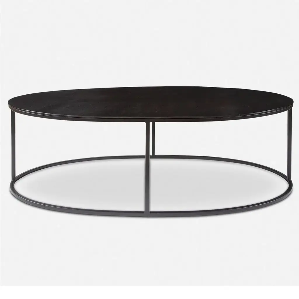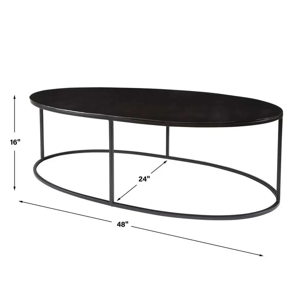 Aged black iron is forged into a simple shape in the Coreene coffee table. Add style and functionality to your living room with this chic table.