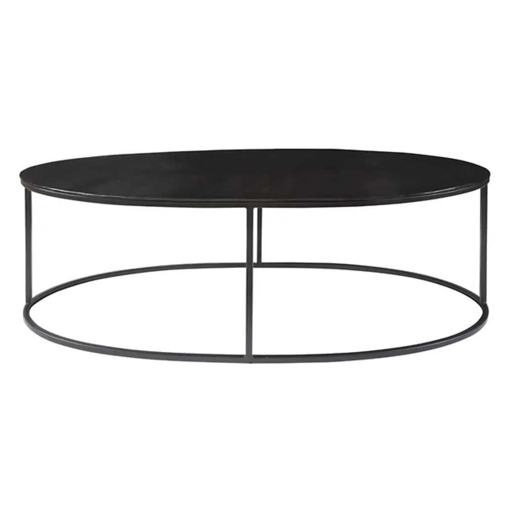 The Coreene Oval Coffee Table from Uttermost blends simplistic industrial aesthetics with modern elegance. Fashionably manufactured from aged black iron, this coffee table frame exudes durability and industrial charm. Its standout feature is the cast textured aluminum slab top, finished in a plated in antique black, adding a note of sophistication to its rugged appeal. With its contemporary design and sturdy construction, the table is a versatile centerpiece, perfect for casual gatherings and formal settings alike.