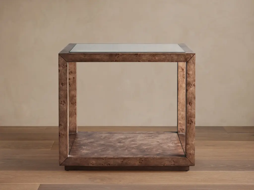 Making a dynamic statement in any room, our Corey Collection is crafted from eye-catching burl wood prized for its unique beauty. Resting on a modern platformed plinth, each Corey piece is hand-finished in warm color tones to illuminate every swirling wood grain detail.