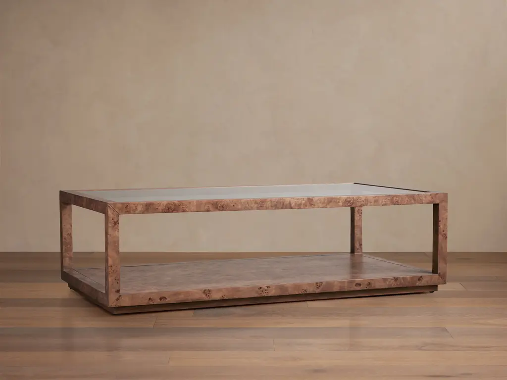 Making a dynamic statement in any room, our Corey Collection is crafted from eye-catching burl wood prized for its unique beauty. Resting on a modern platformed plinth, each Corey piece is hand-finished in warm color tones to illuminate every swirling wood grain detail.