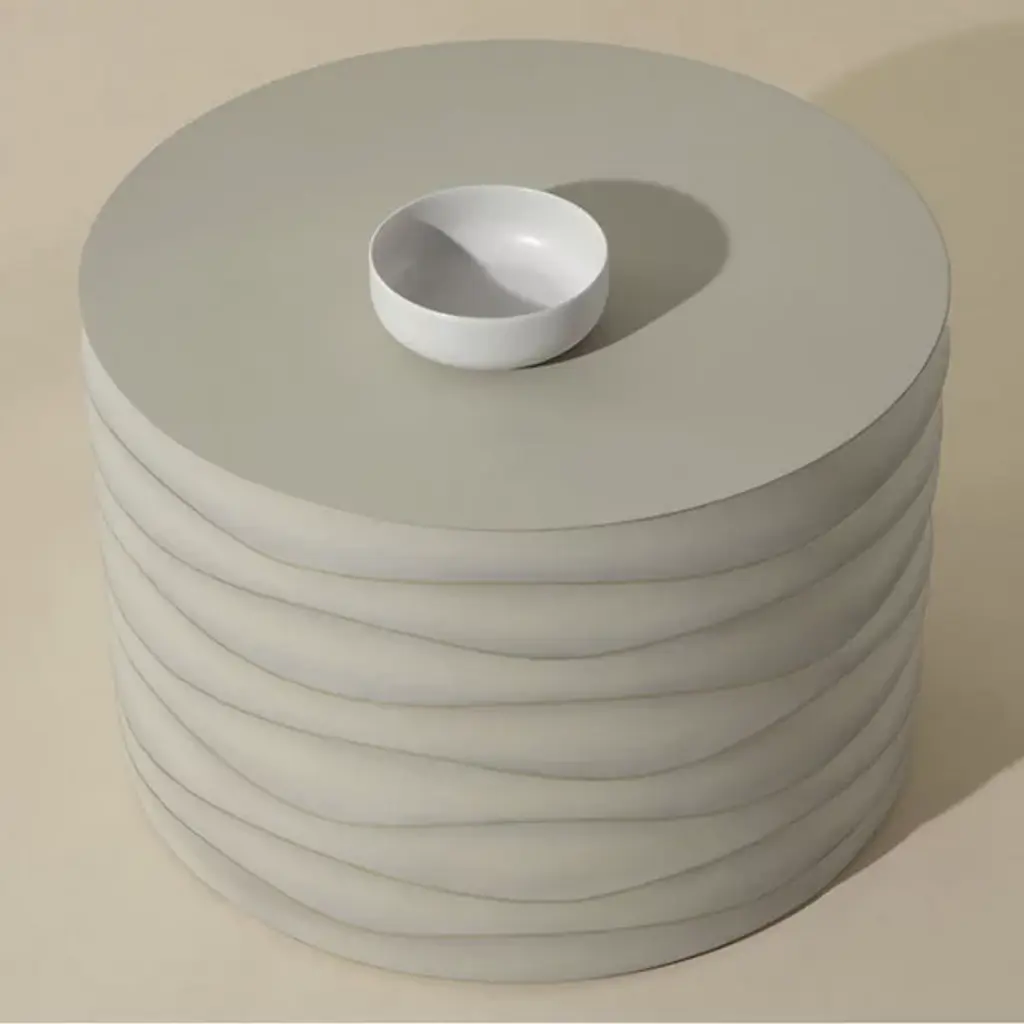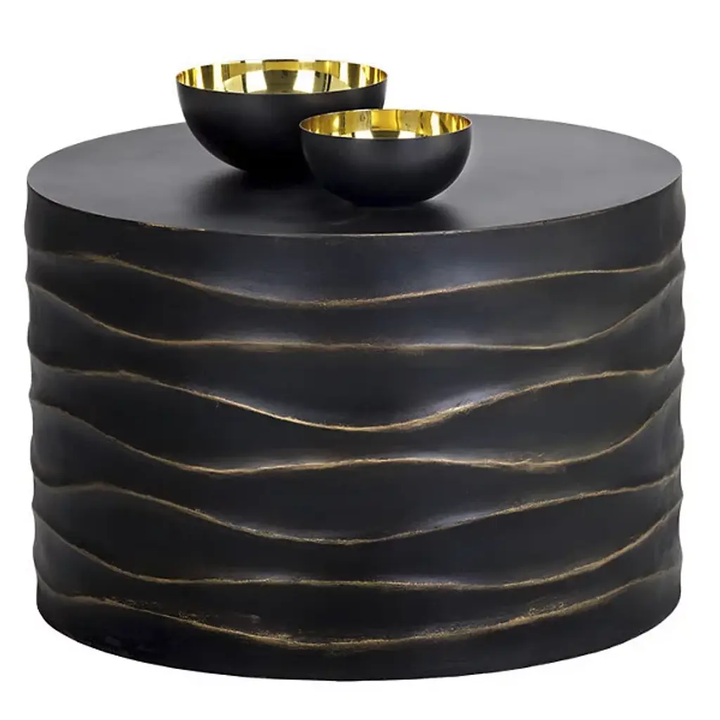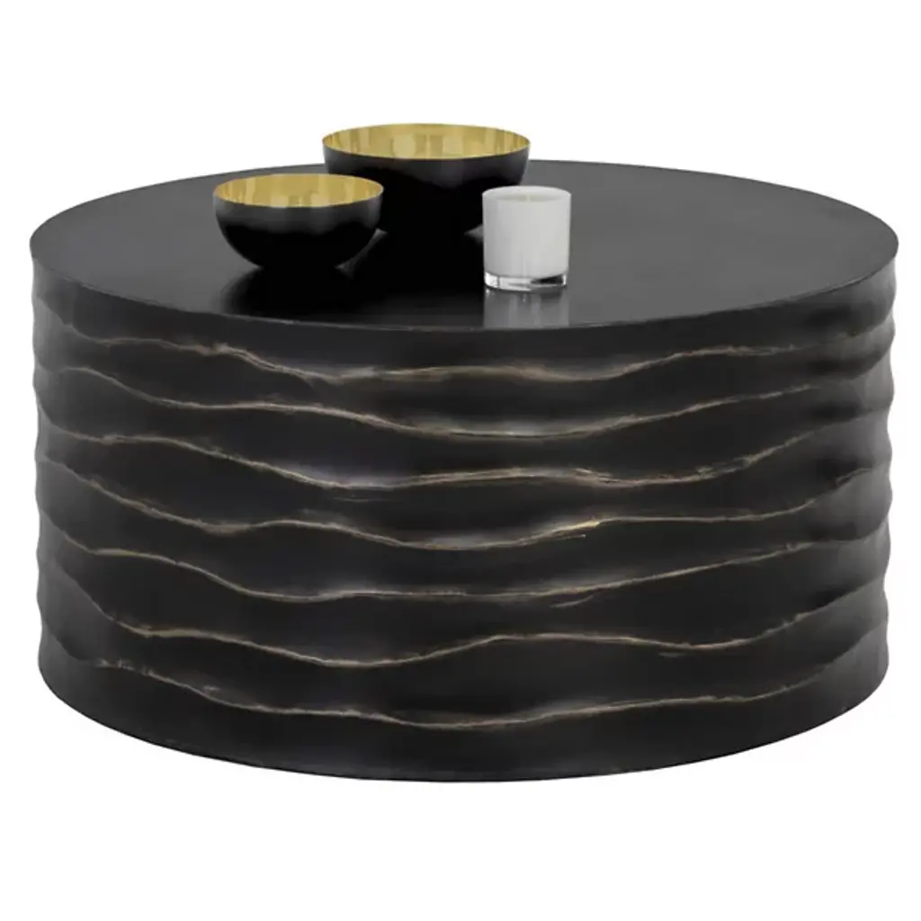The Corey Outdoor Coffee Table from Sunpan mixes organic waves with industrial strength. Hand-sculpted ridges catch light and shadow across the surface, while brass accents provide unexpected glamour. A specialized coating defends against moisture without hiding the concrete's natural essence. This substantial piece anchors living, lounge, and office spaces while maintaining its own quiet drama. Natural concrete traits emerge during casting—tiny bubbles and mineral deposits that authenticate its crafted nature.
