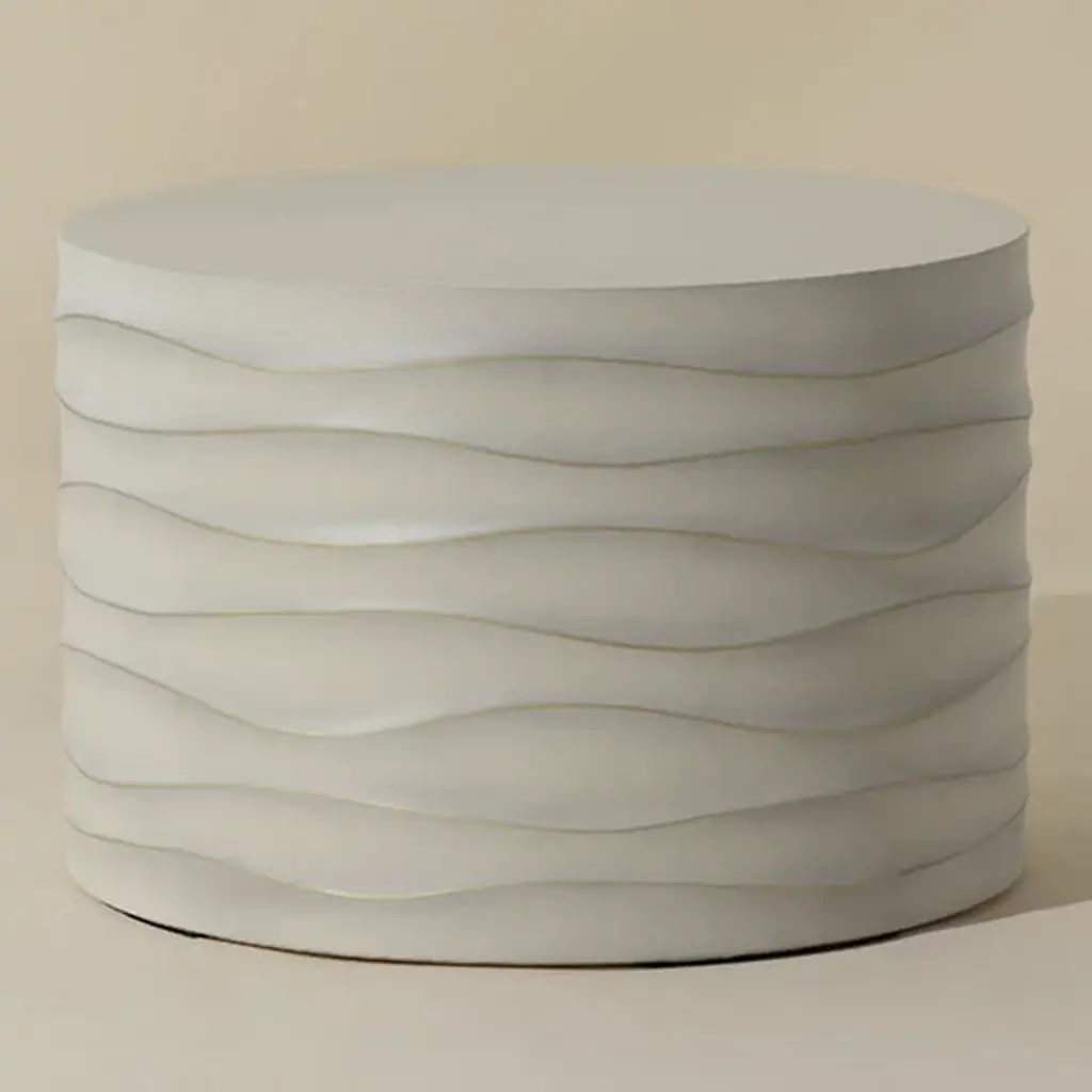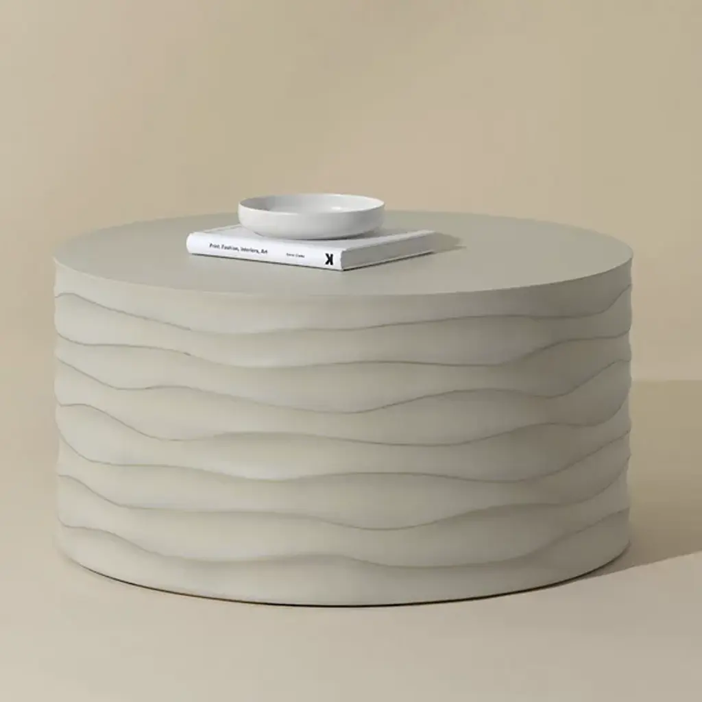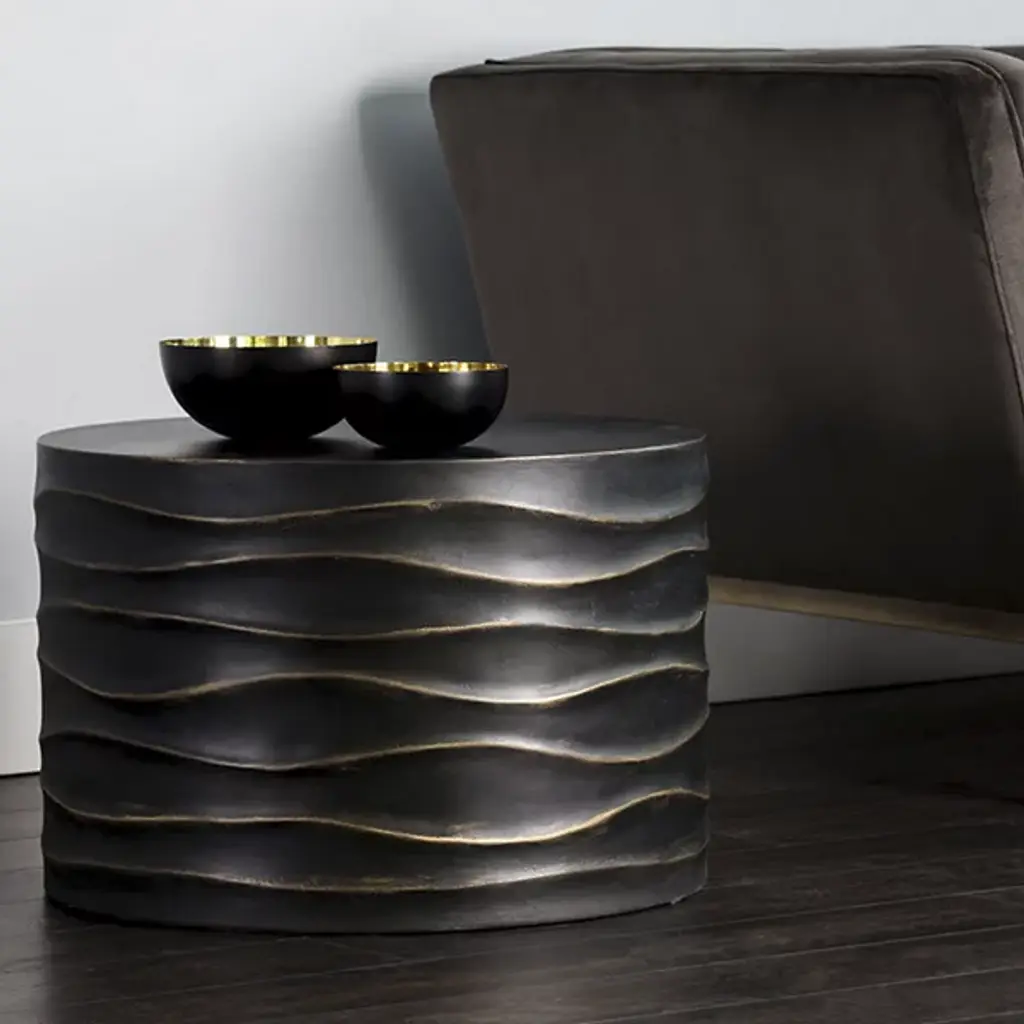 The Corey Outdoor Coffee Table from Sunpan mixes organic waves with industrial strength. Hand-sculpted ridges catch light and shadow across the surface, while brass accents provide unexpected glamour. A specialized coating defends against moisture without hiding the concrete's natural essence. This substantial piece anchors living, lounge, and office spaces while maintaining its own quiet drama. Natural concrete traits emerge during casting—tiny bubbles and mineral deposits that authenticate its crafted nature.