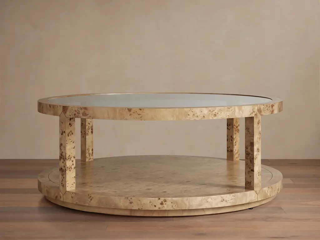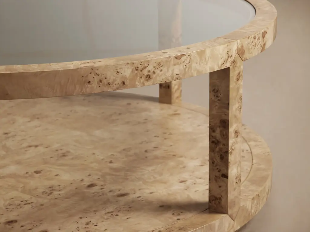 Making a dynamic statement in any room, our Corey Collection is crafted from eye-catching burl wood prized for its unique beauty. Resting on a modern platformed plinth, each Corey piece is hand-finished in warm color tones to illuminate every swirling wood grain detail.
